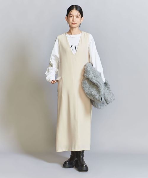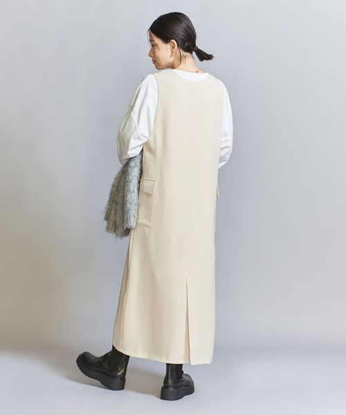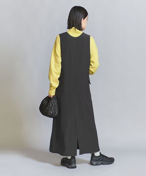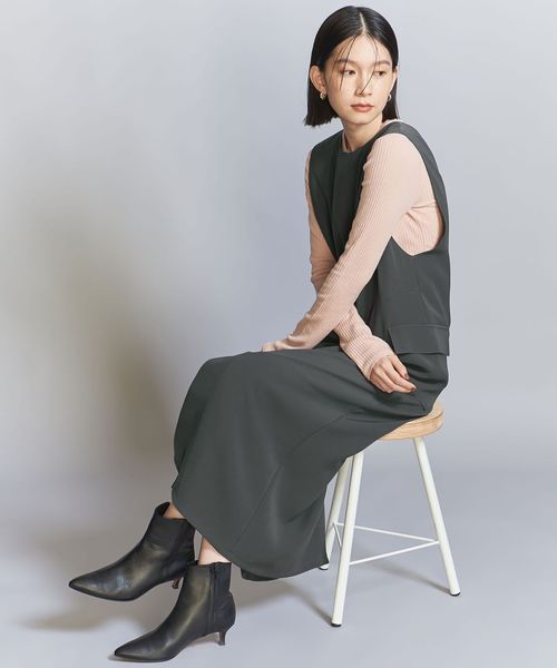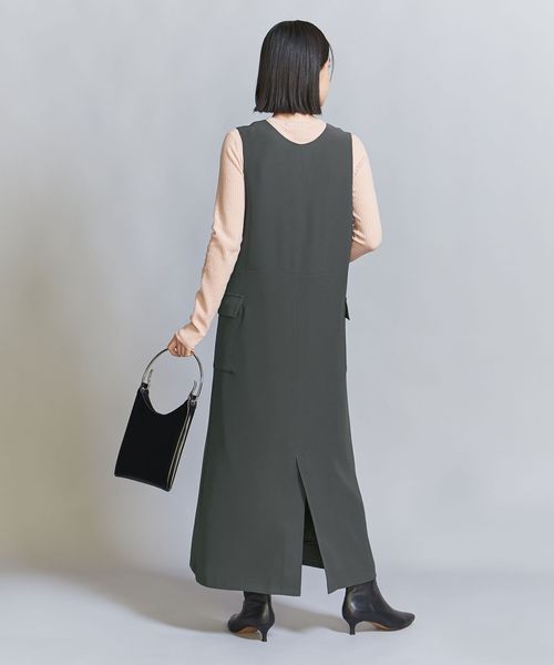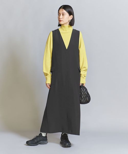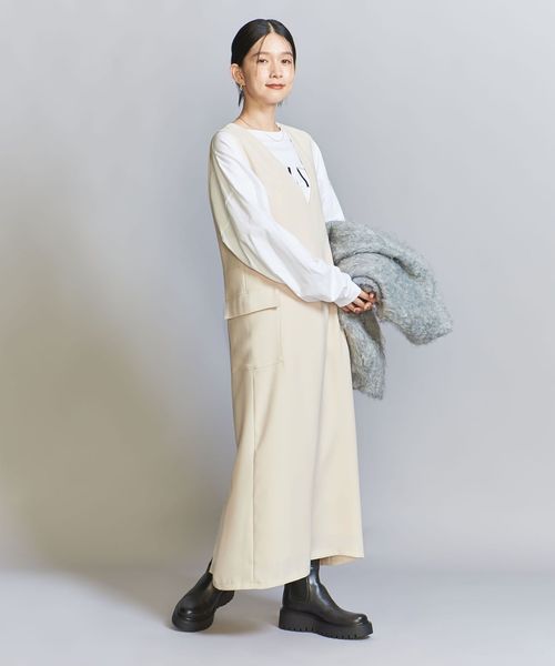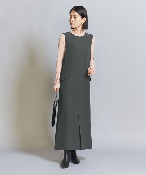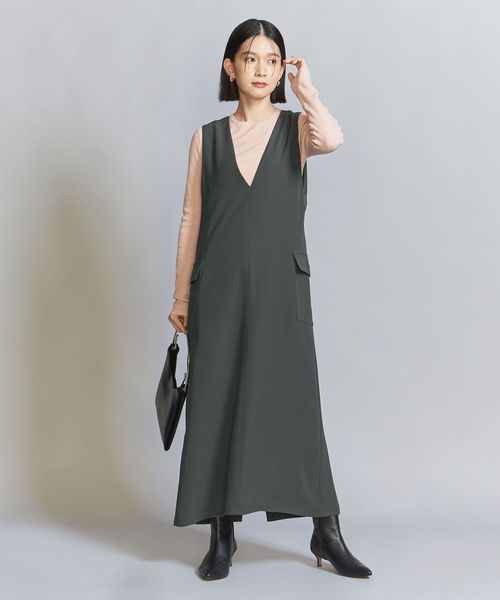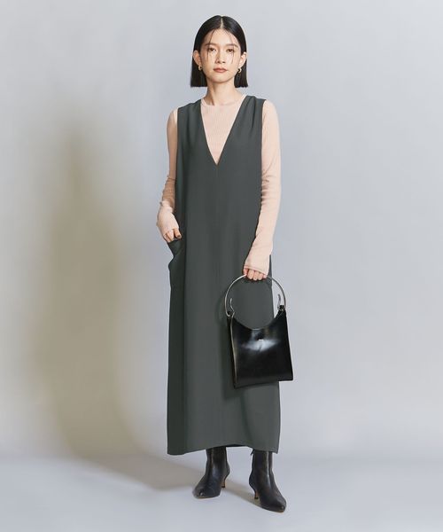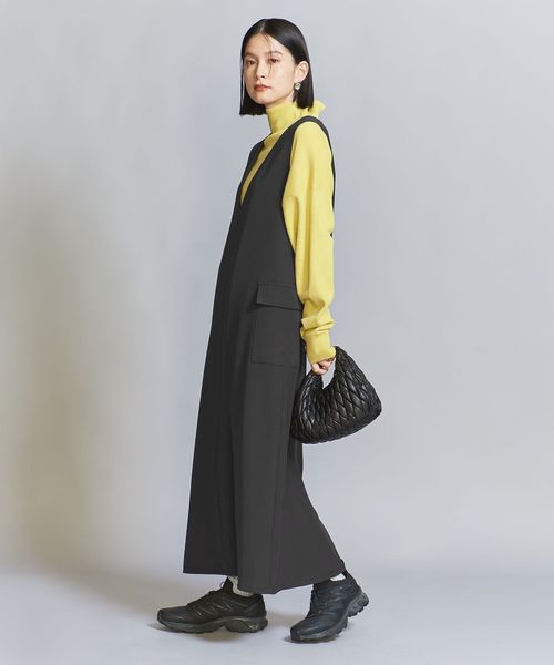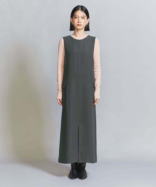 ダブルクロスのさらりとした生地感が大人のカジュアルスタイルにぴったりなジャンパースカート。