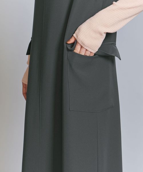 両サイドのフラップポケットや、足さばきにも配慮したスリットが、シンプルなルックスにアクセントをプラス。