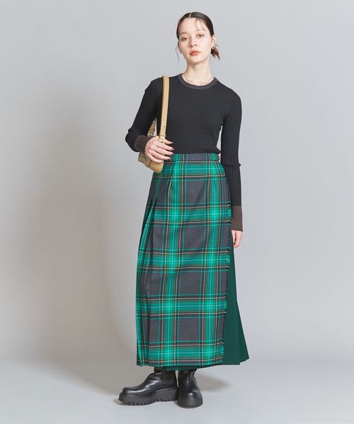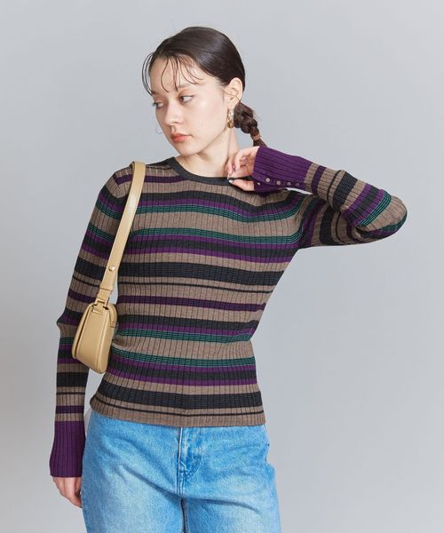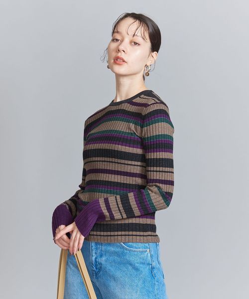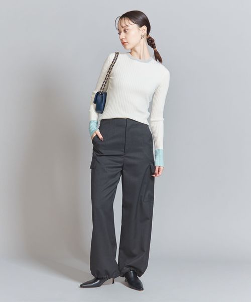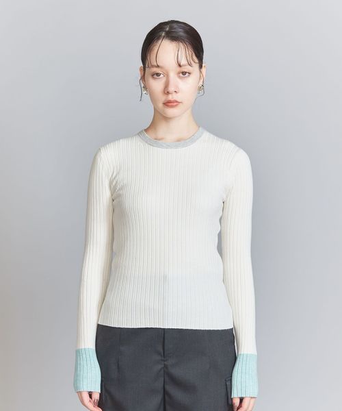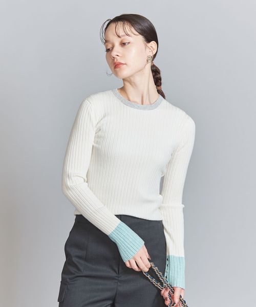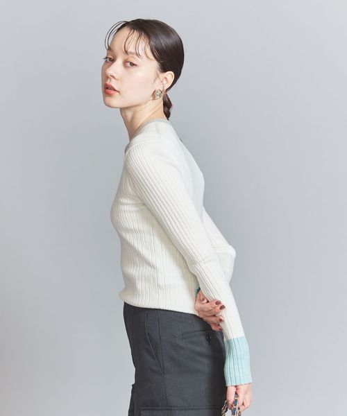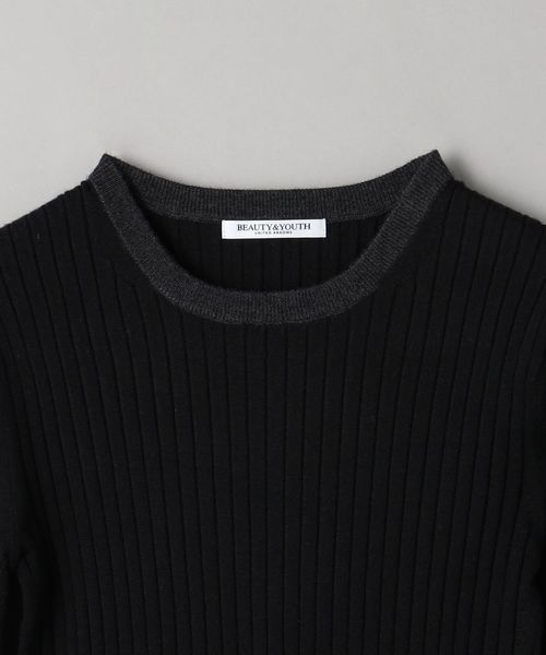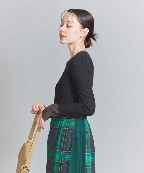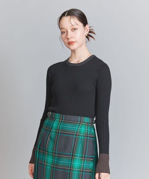 ウール混の綺麗な見え方のリブ編みで仕上げた安心感のある厚みで、ボディラインを拾い過ぎないのがポイント。