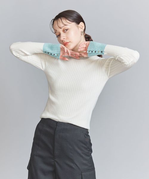 リブ カフスボタン コンパクト ニット プルオーバー ―ウォッシャブル―