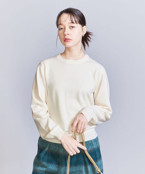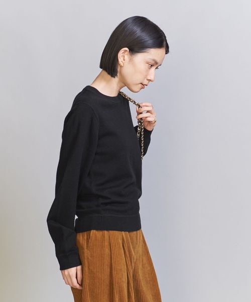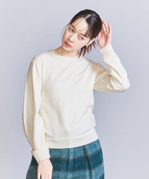 ハイゲージで編み上げたクリーンな表情が魅力のニットプルオーバー。