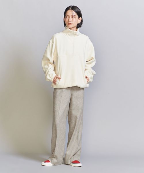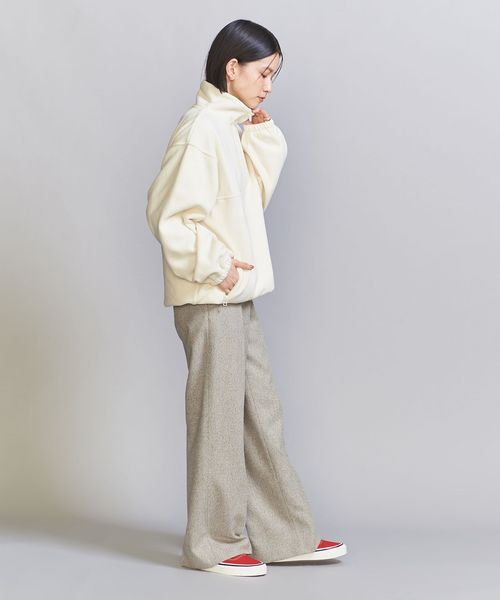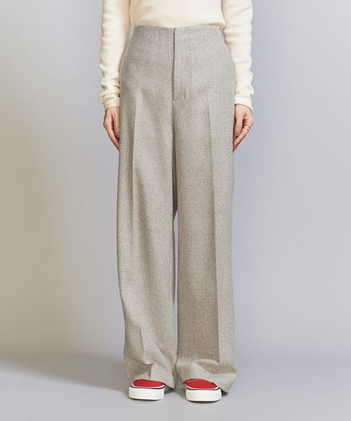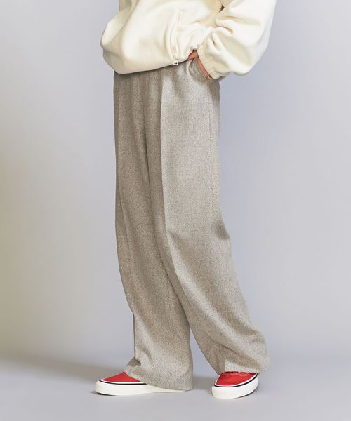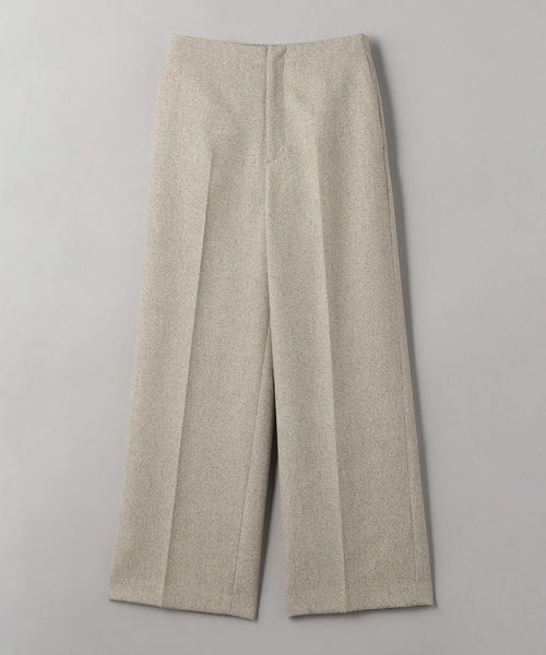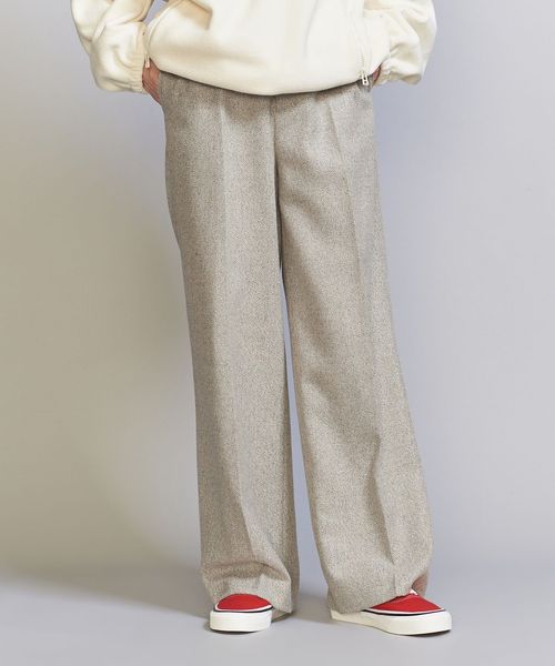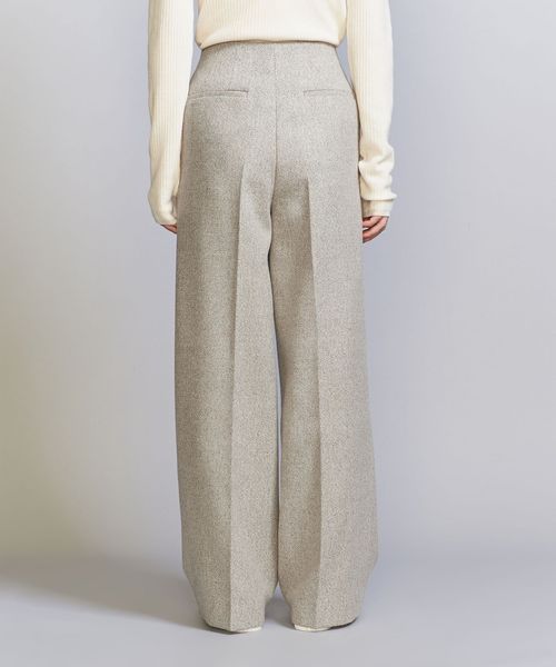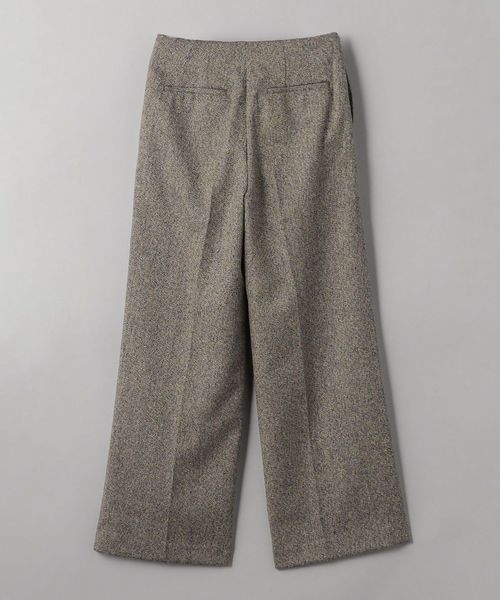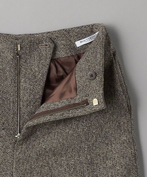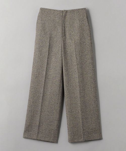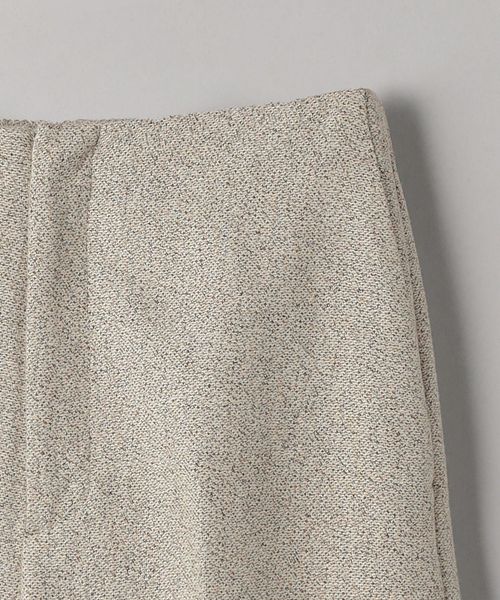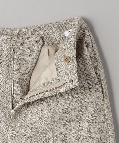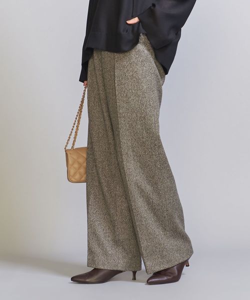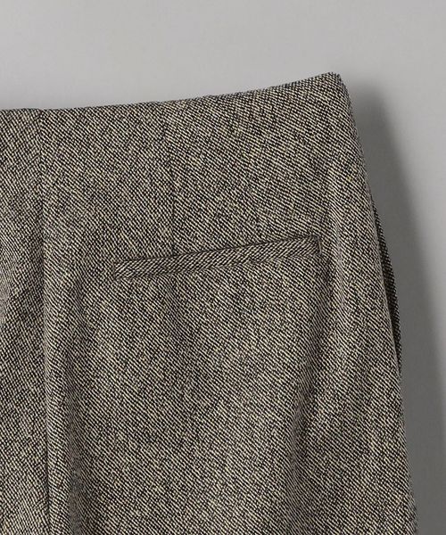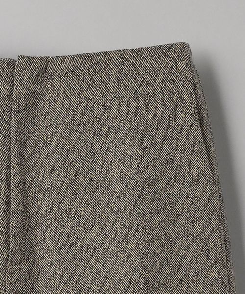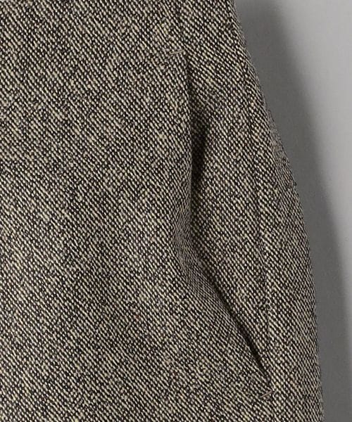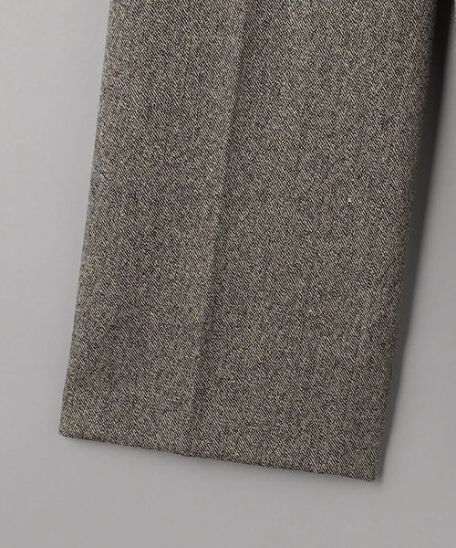 表面を抑える加工でフラットなきれいめ見えにこだわった、紡毛のネップ感のあるツイード素材。