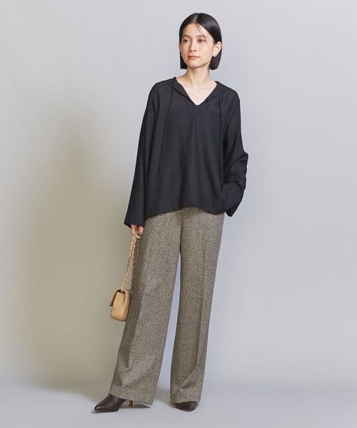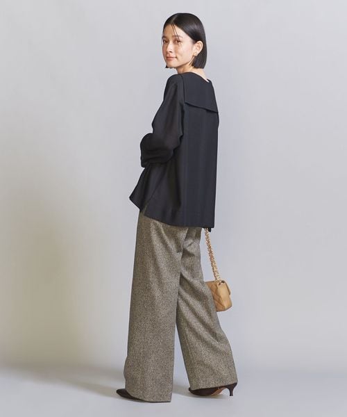 ウールやカシミヤのベーシックニットに合わせて、品よくまとめるのがおすすめです。