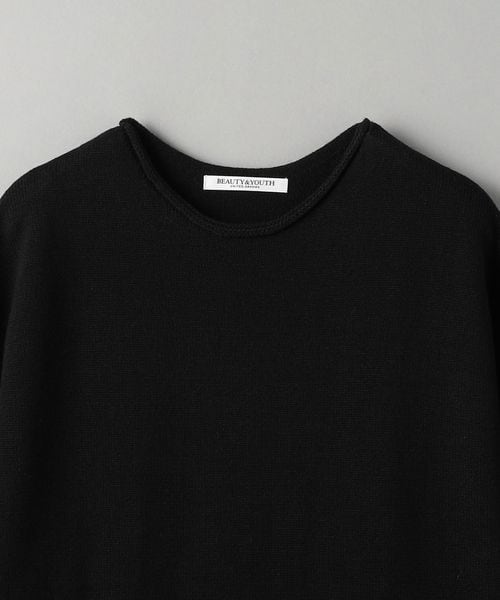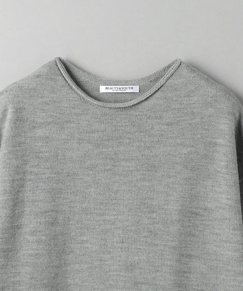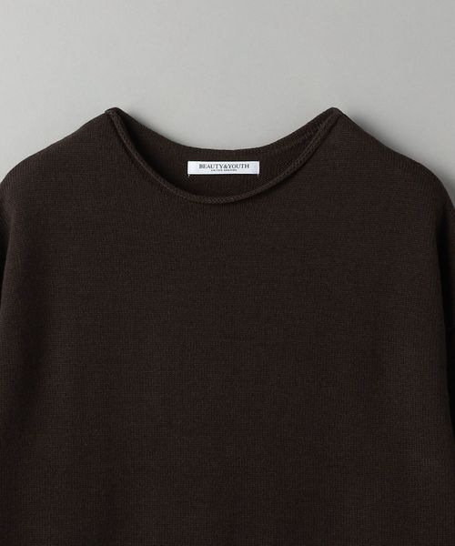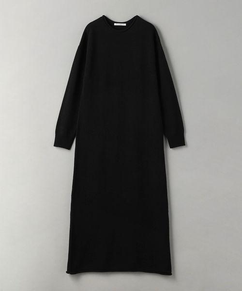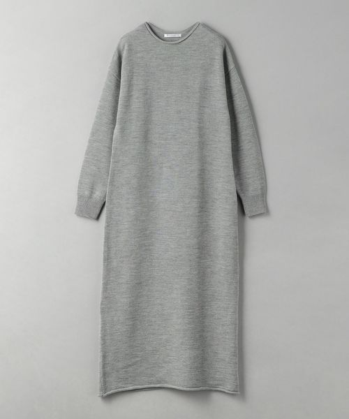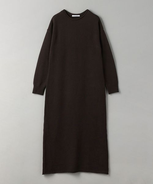 首元と裾がロールしたデザインがポイントの微フレアニットワンピース。