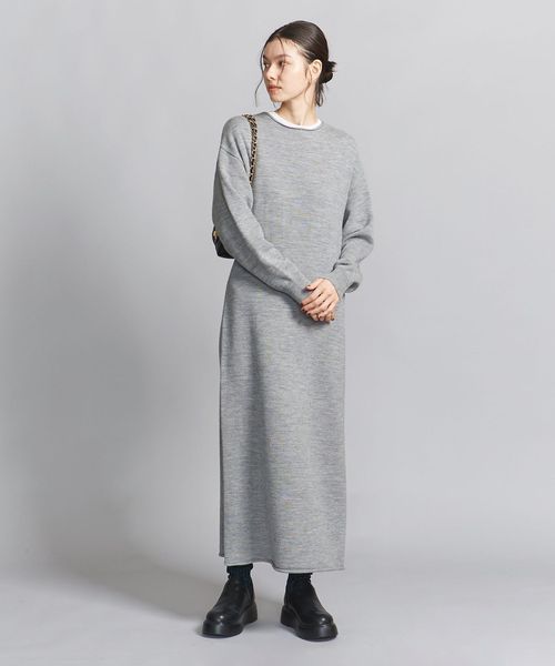 ウール クルーネック ニット ワンピース