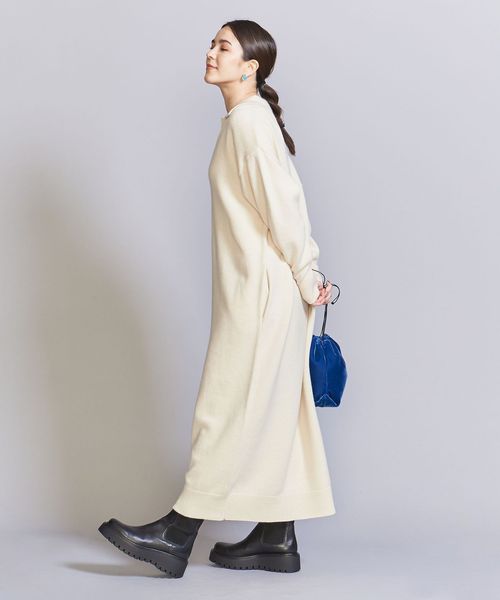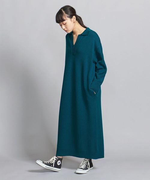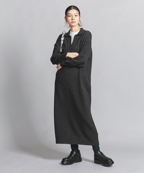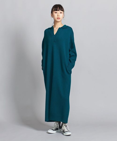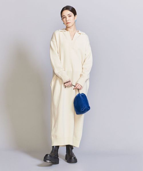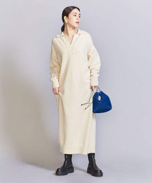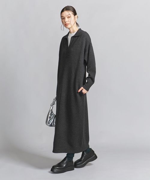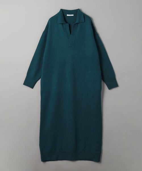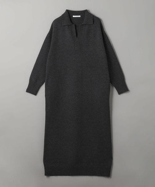 ウール スキッパーネック ニット ワンピース