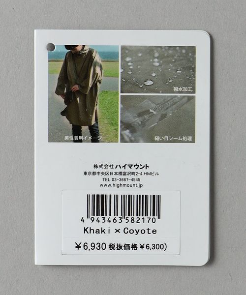 <HUS.>アウトドア ポンチョ ―ウォッシャブル―