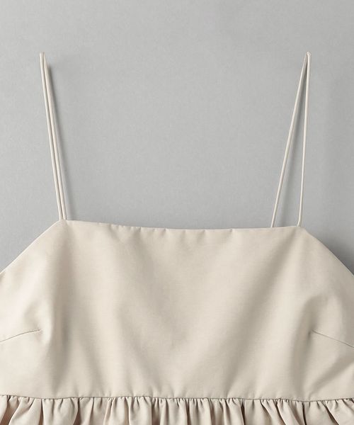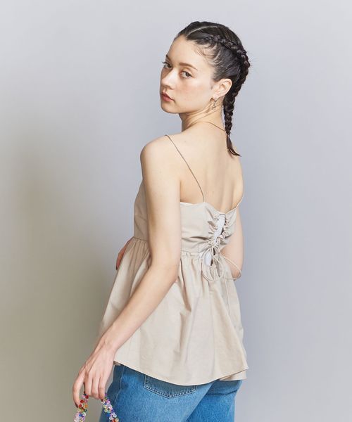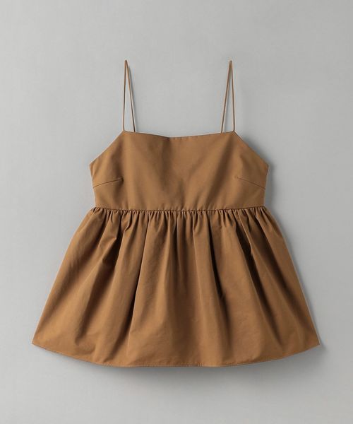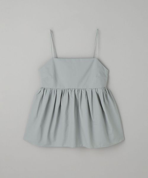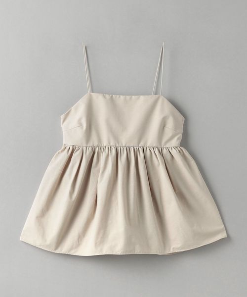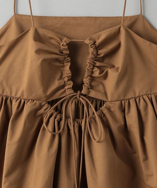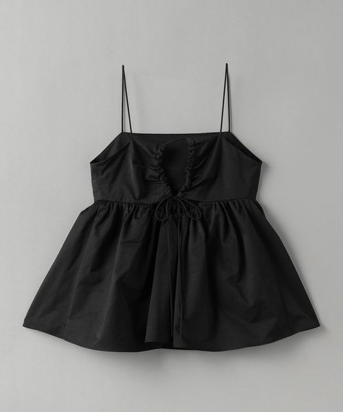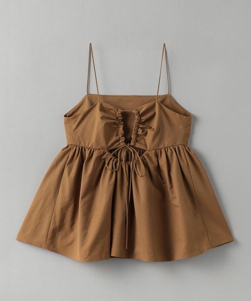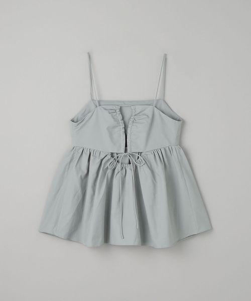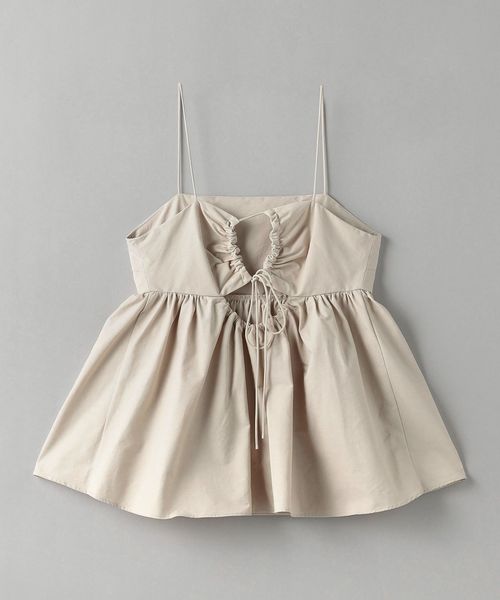 前のギャザーと後ろのバックホールのデザインがアクセントとなったキャミソールトップス。