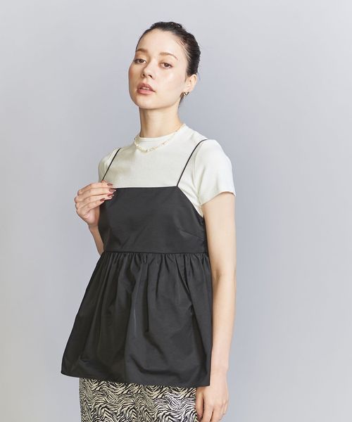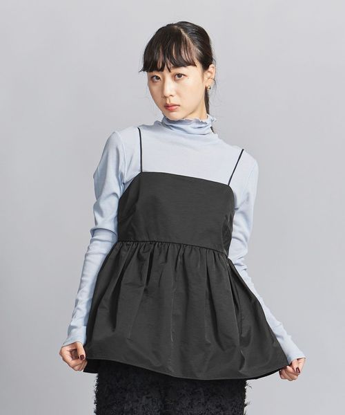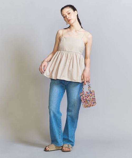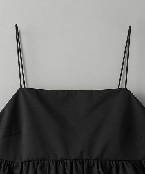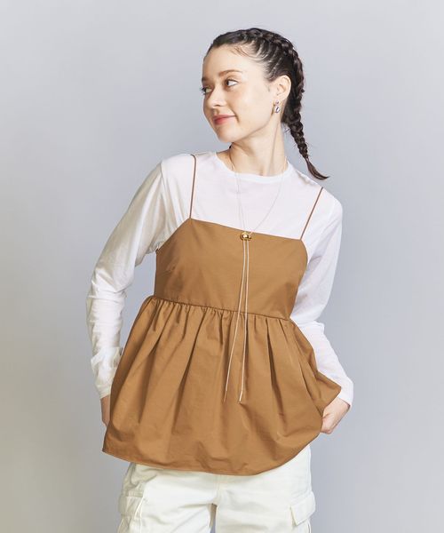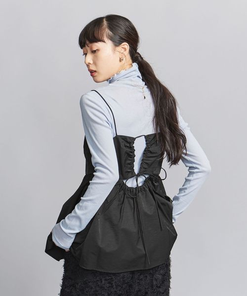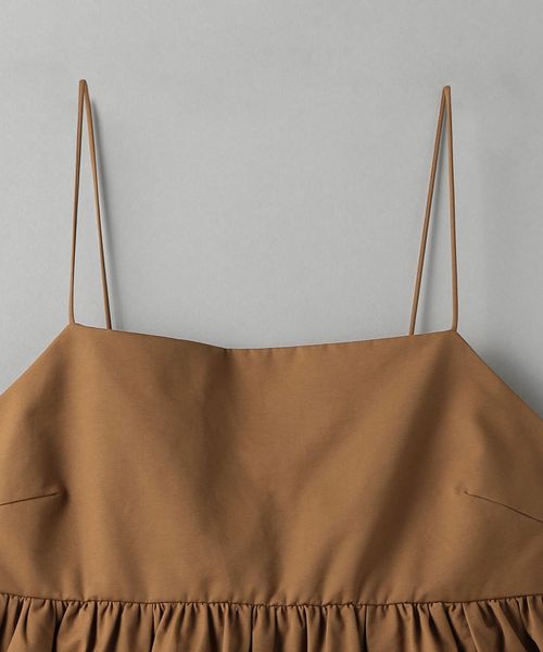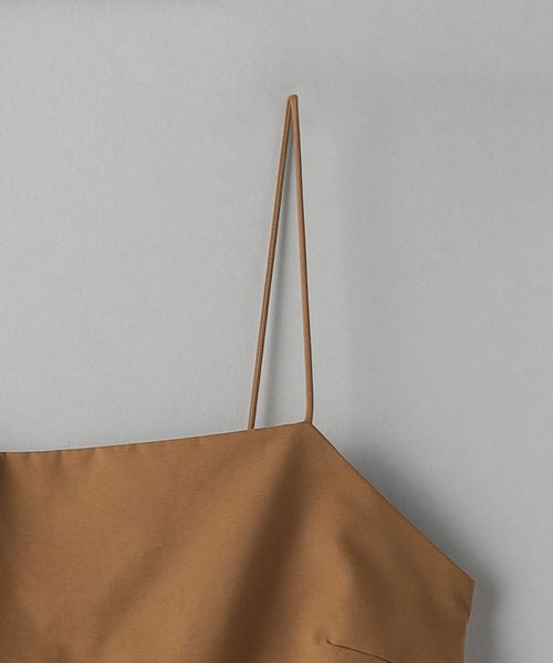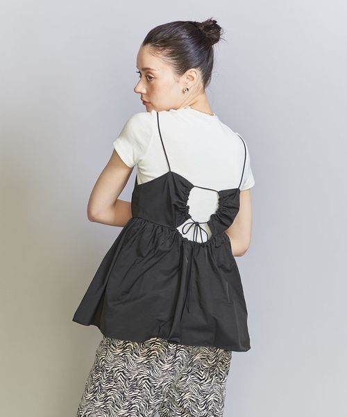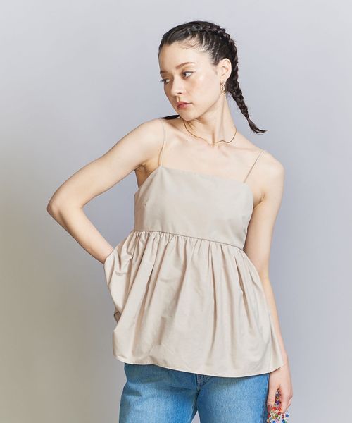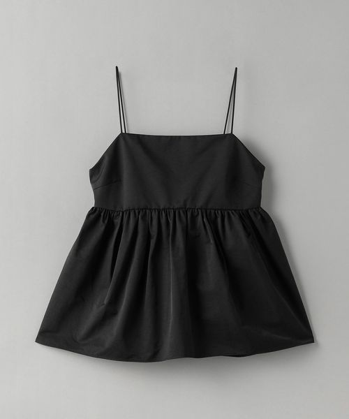 前のギャザーと後ろのバックホールのデザインがアクセントとなったキャミソールトップス。