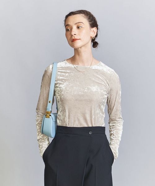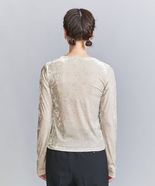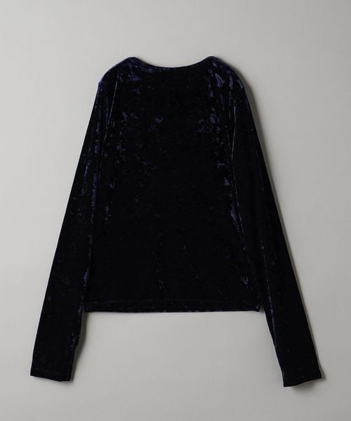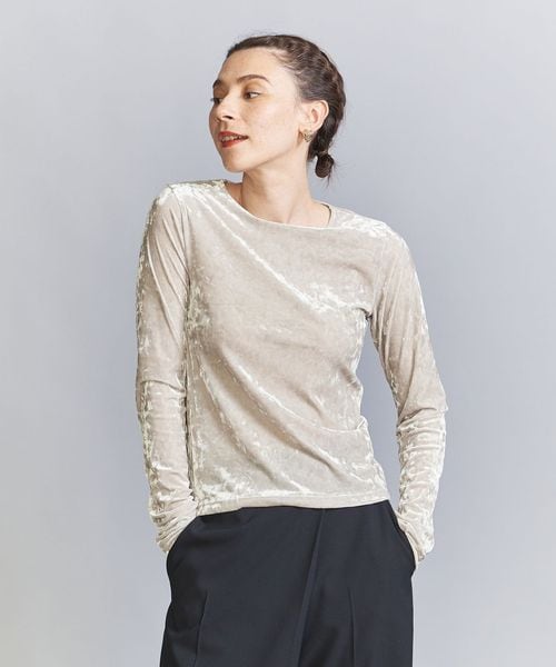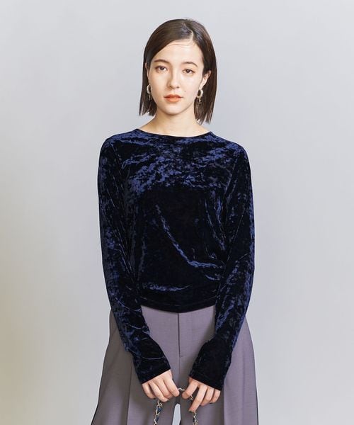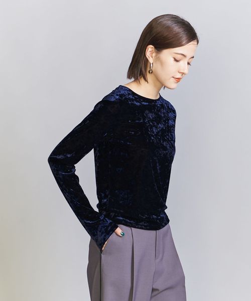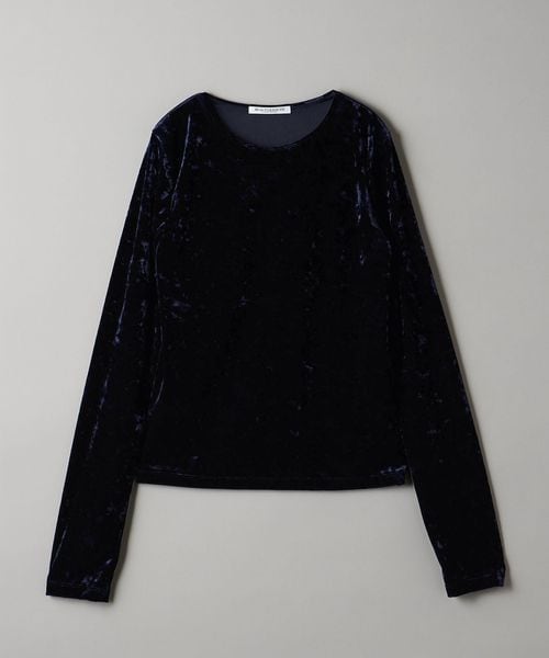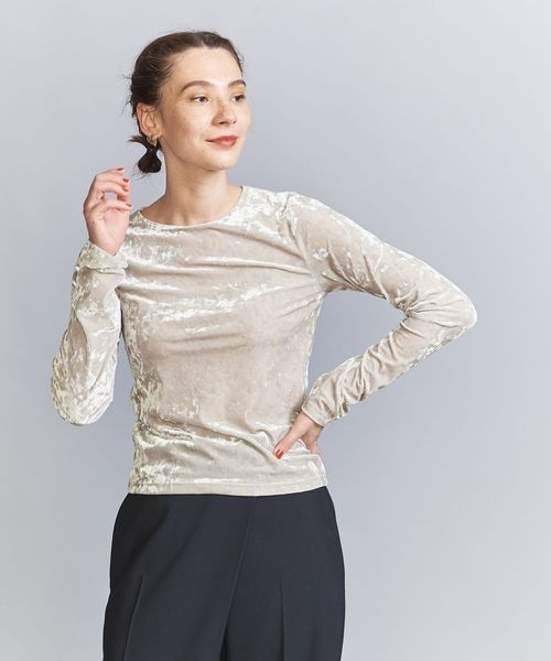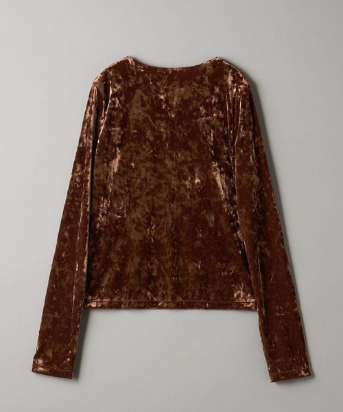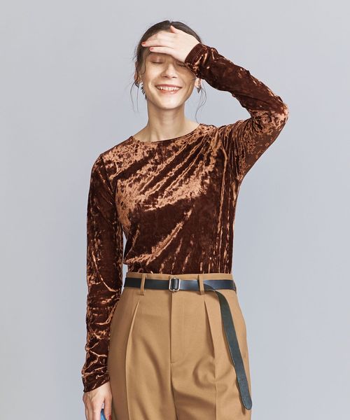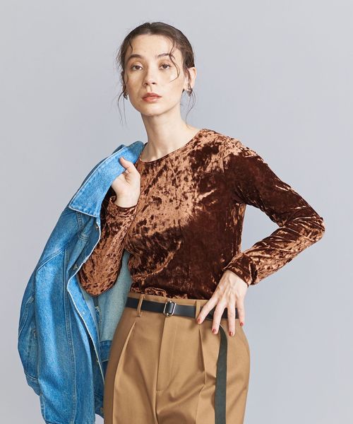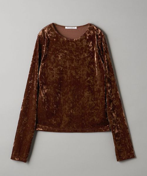 秋冬の旬顔トップス。クラッシュベロアが華を添えるロングスリーブTシャツ。
