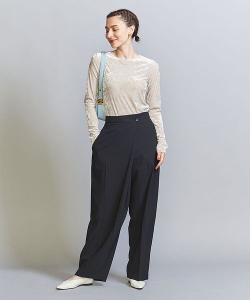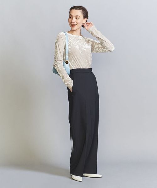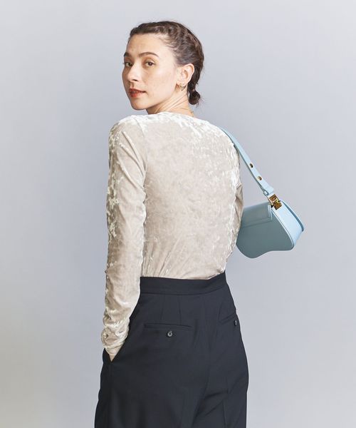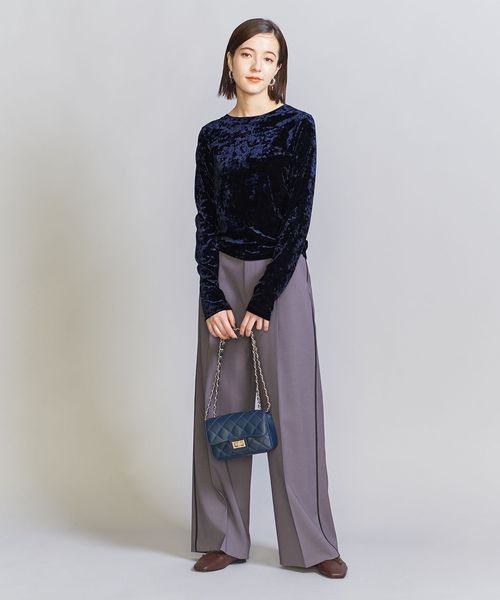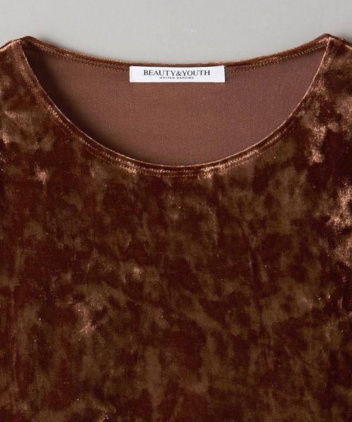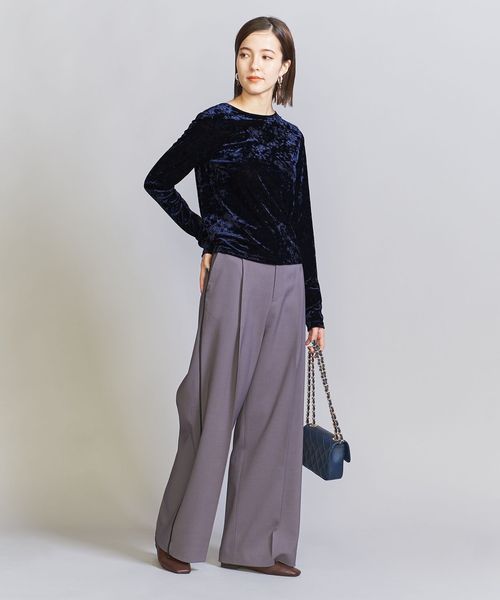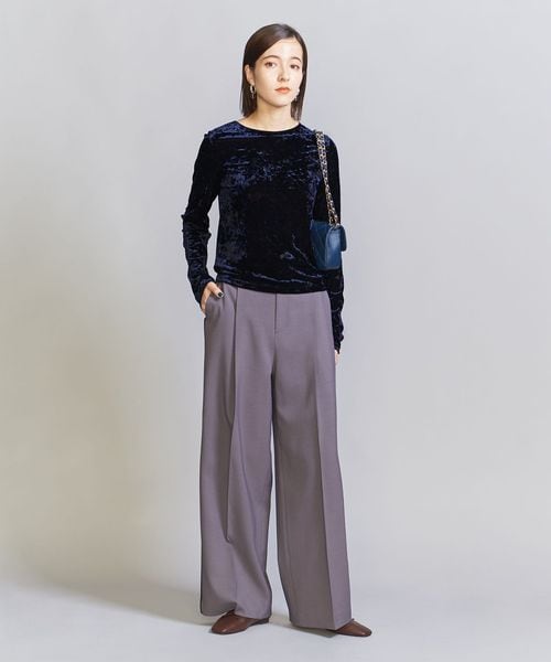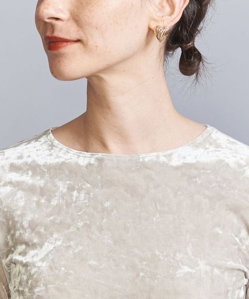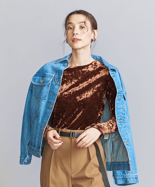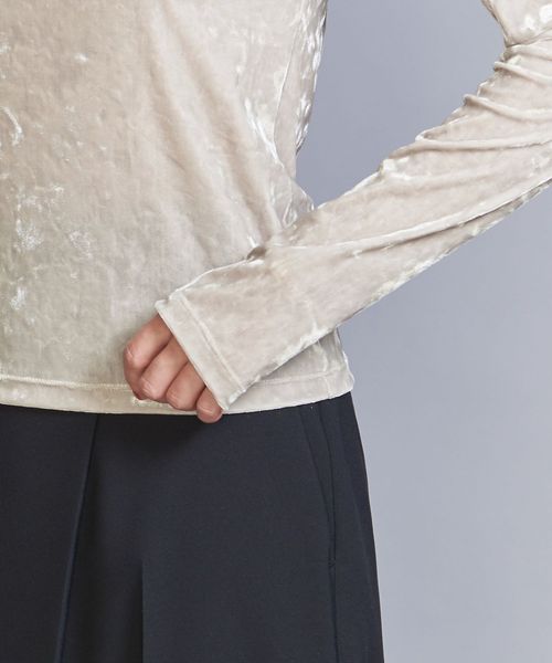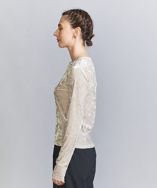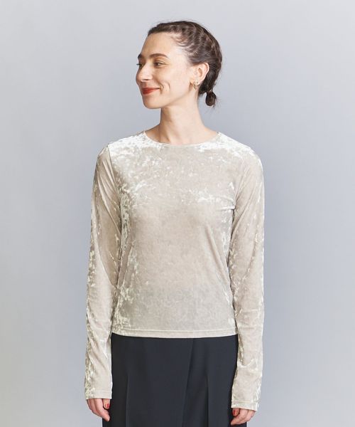 秋冬の旬顔トップス。クラッシュベロアが華を添えるロングスリーブTシャツ。