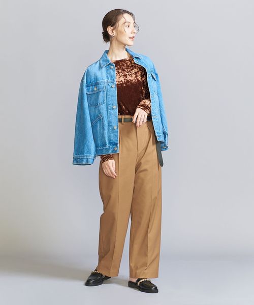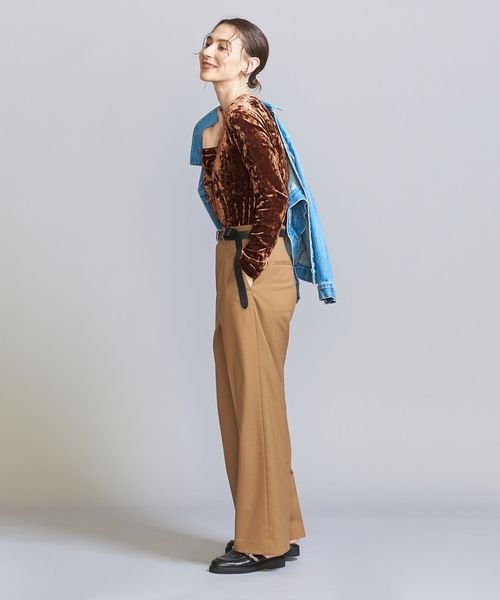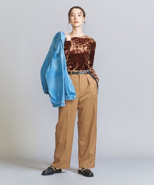 カーディガンやアウターのインナーで着用すれば、表情のあるベロアがコーディネートにスパイスを効かせてくれます。