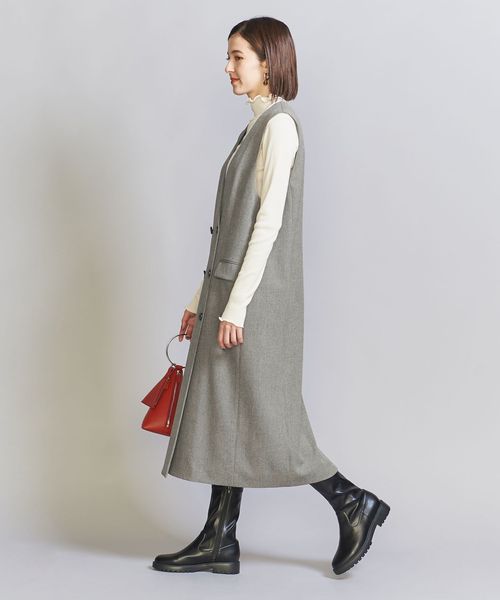 シンプルな装いも、ジレとして羽織るだけで洗練された着こなしへと導いてくれます。
