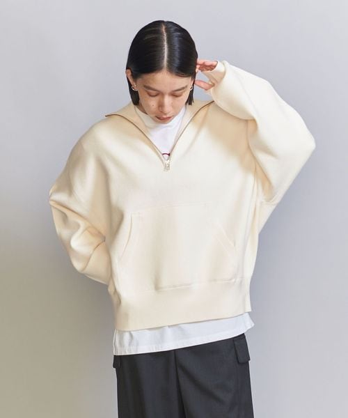 着方によってがらりと表情が変わるハーフジップ仕様で、インナーレイヤードも映える一枚。