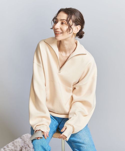 大人カジュアルにぴったりな、抜け感ハーフジッププルオーバー