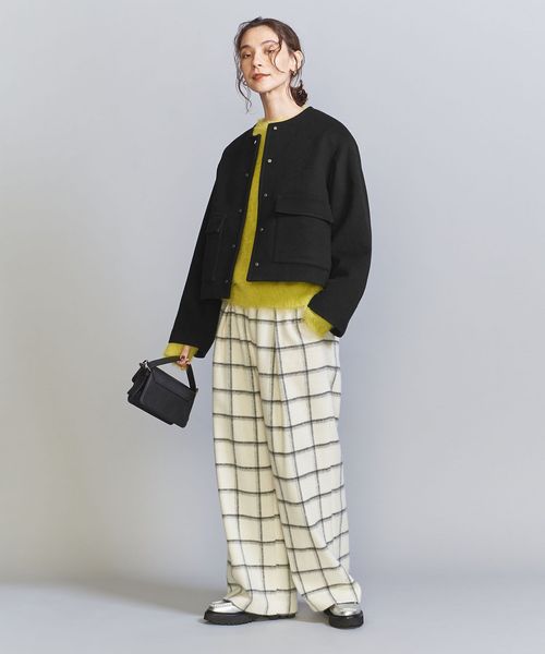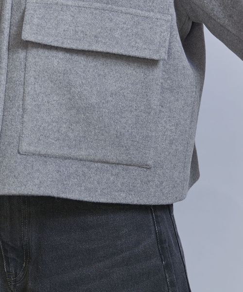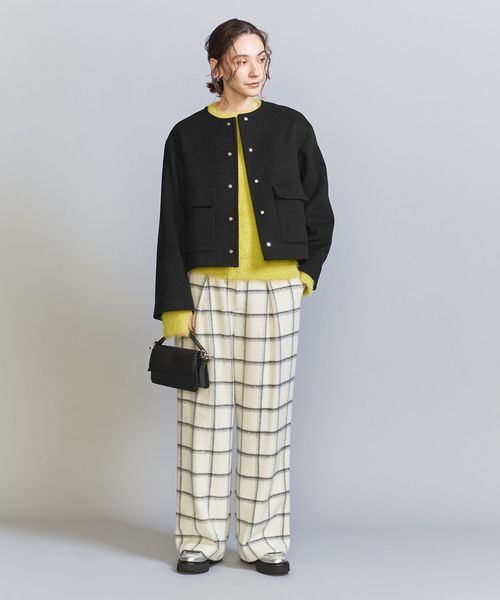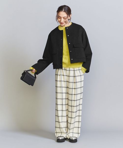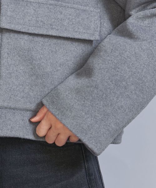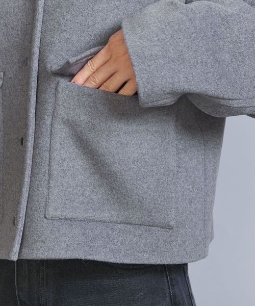 ふっくらとした毛混素材でお作りした、旬のムード漂うショート丈コート。
