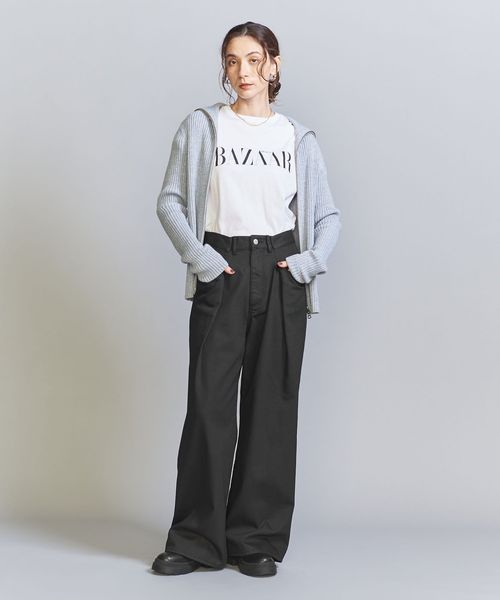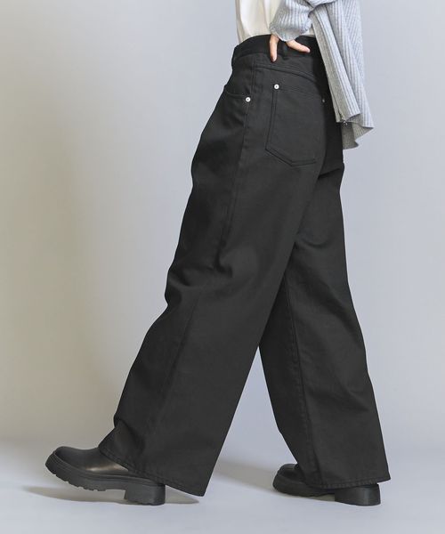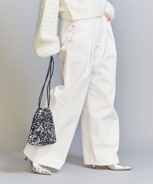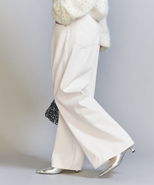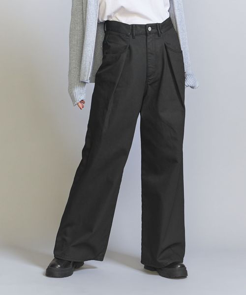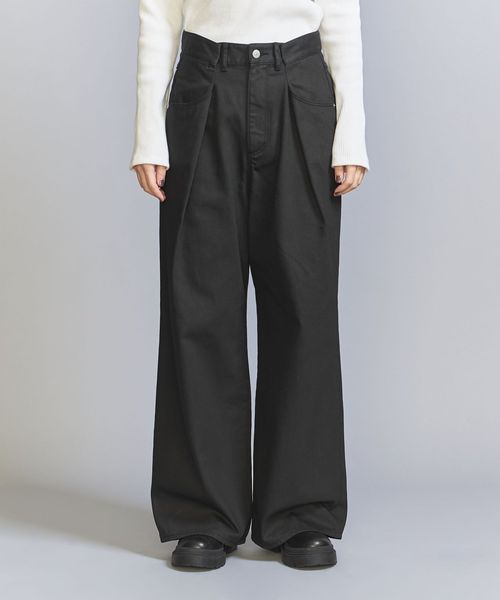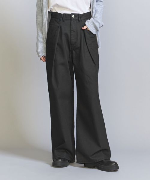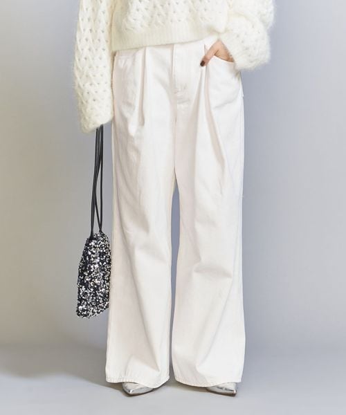 大胆なフロントタックで印象付ける、旬のワイドデニムパンツ。
