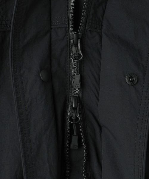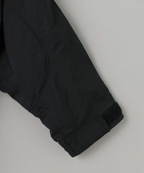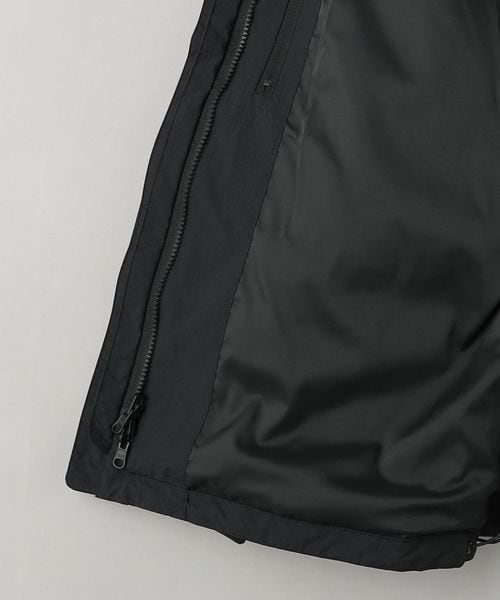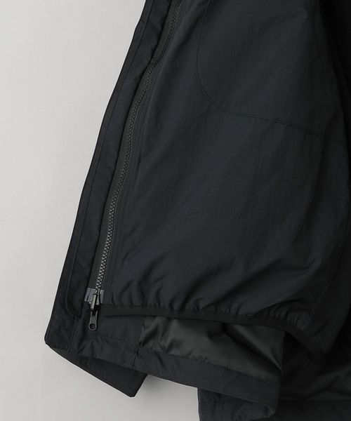 ディテールを重視したポケットワークを機能的に紐づいた曲線的な切替、特にサイドはハンドウォーマーとジップポケットの両機能があるジャケット。