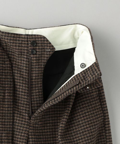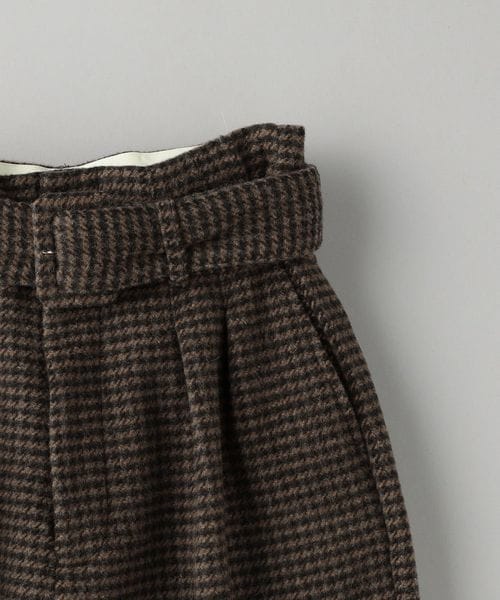 オリジナル素材のガンクラブチェック柄がトラッドな印象のベルテッドスラックス。
