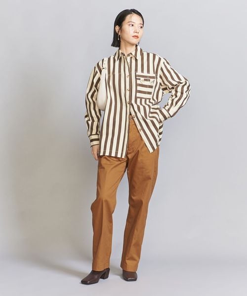 プリントTシャツをウエストインしてミニマルに纏めたり、シャツを組み合わせたクリーンな装いもおすすめ。