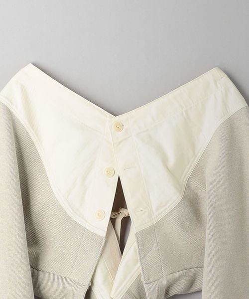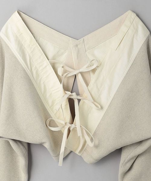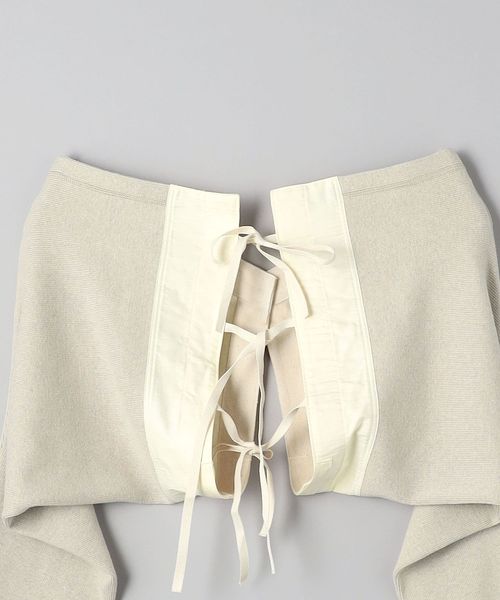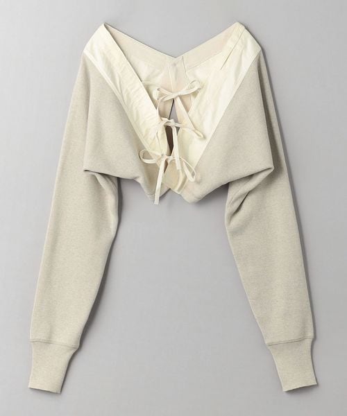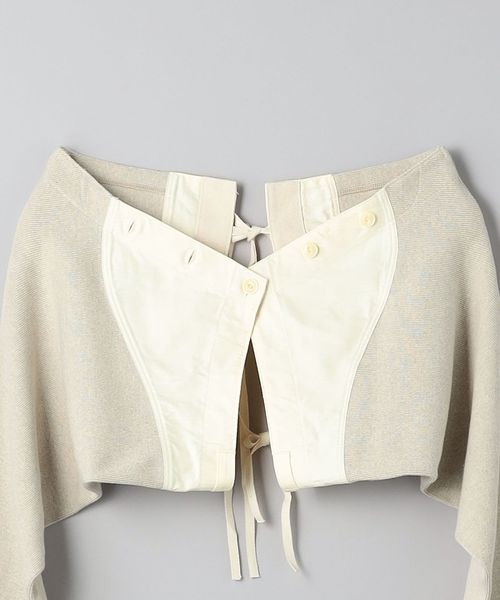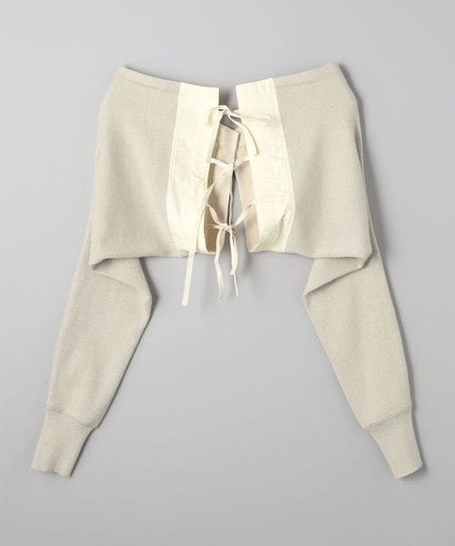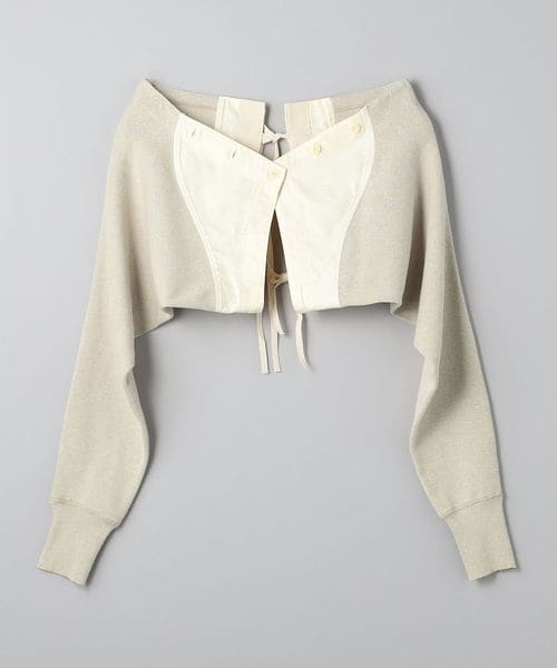 異素材のコンビネーションやバックのレースアップディテールが特徴的なボレロ。