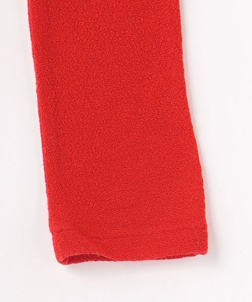 凹凸感のある編み地により、サラッとした肌触りが際立ち、軽くふんわりとした風合いが特徴です。