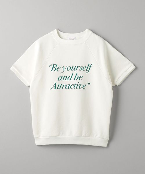 クリーンな印象のホワイトに映えるグリーンのロゴプリントが印象的な一着。