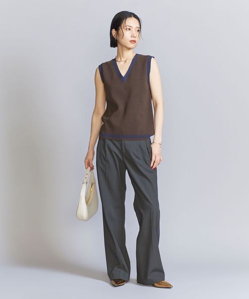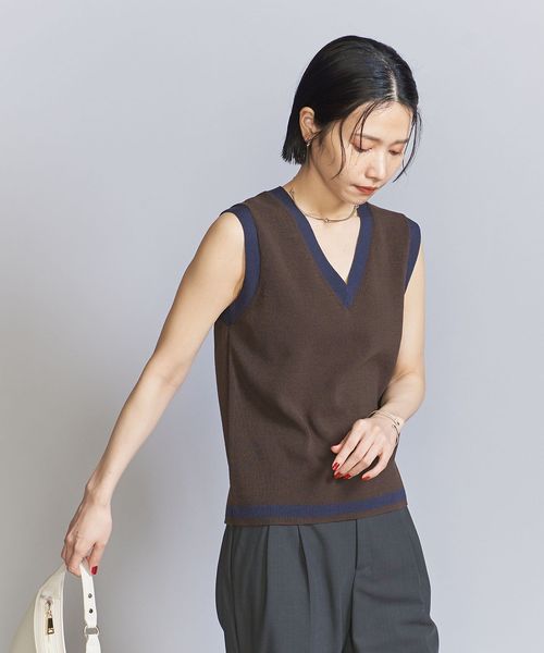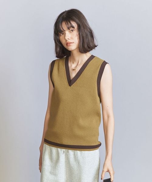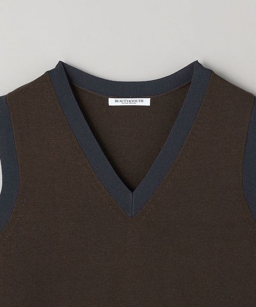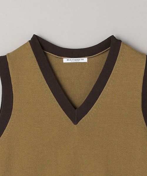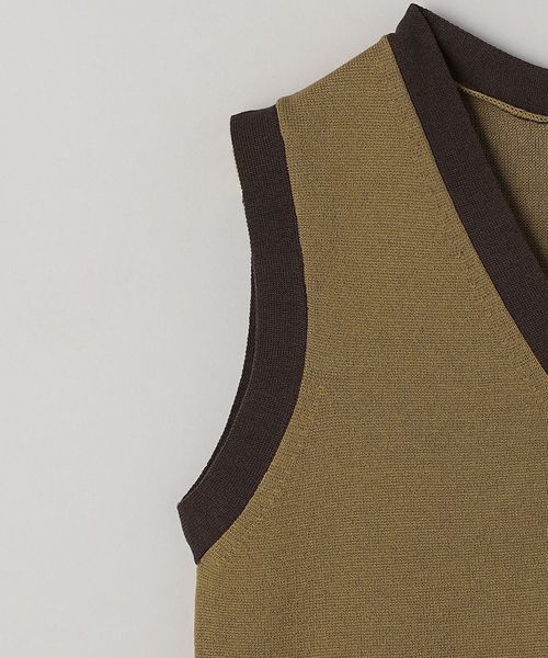 バイカラーのラインでアクセントを効かせたVネックベスト。