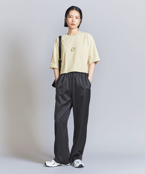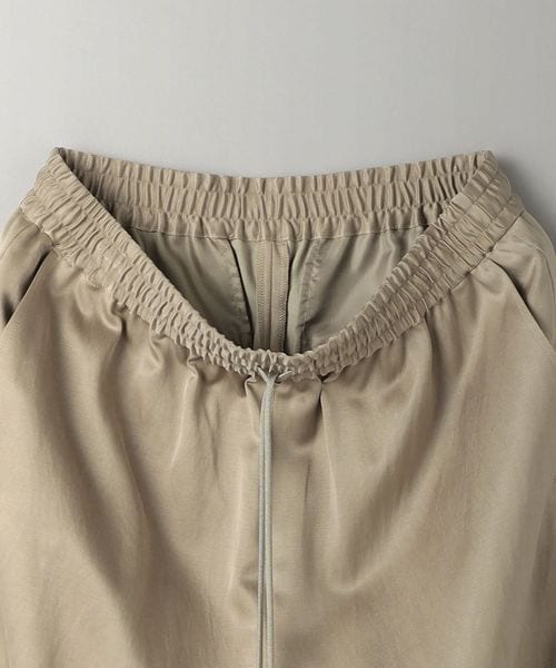 定番のサテンテーパードパンツをワイドシルエットにアレンジしたニューモデルが登場。