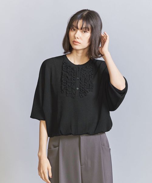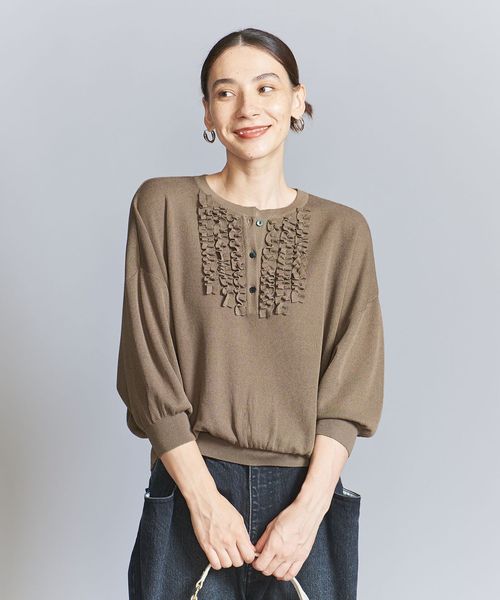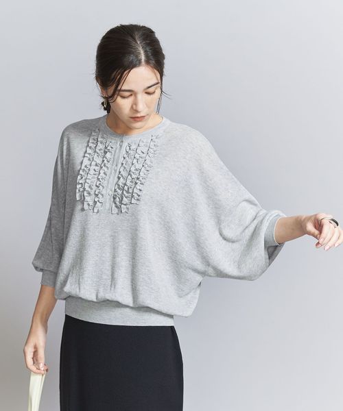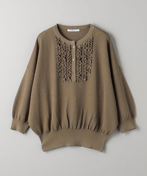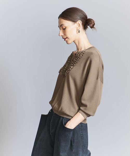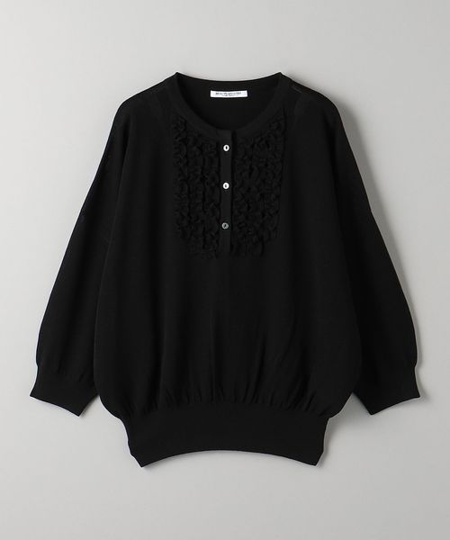 胸元にほどこしたフリルがコーデを彩る人気のニットプルオーバーが、待望の6分袖にアップデート。
