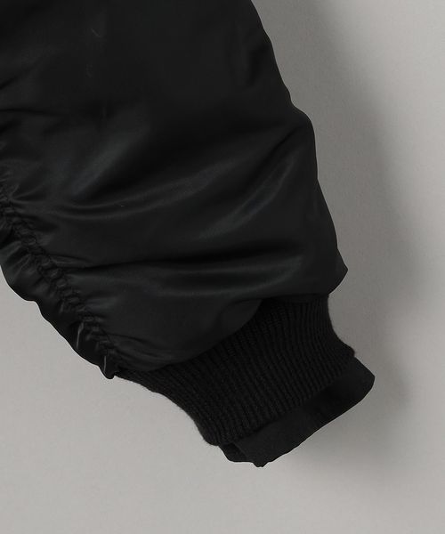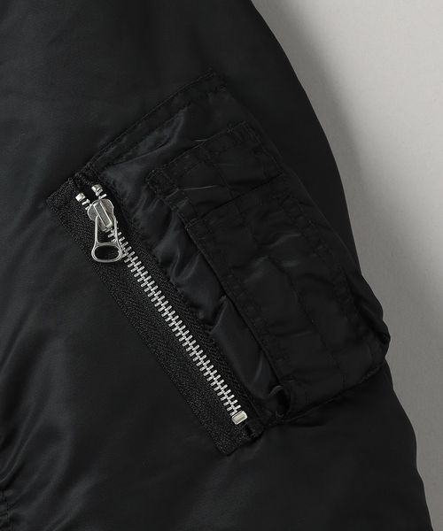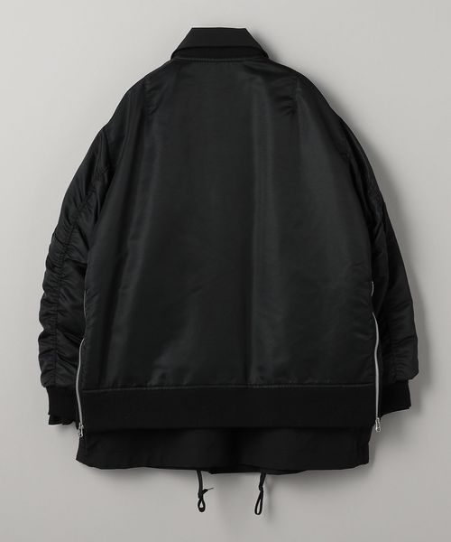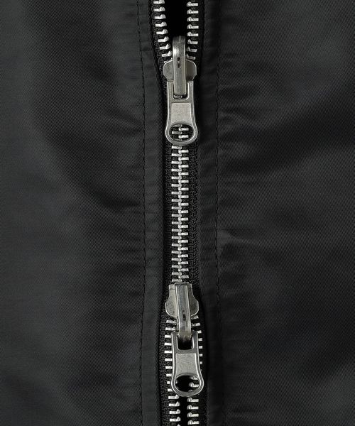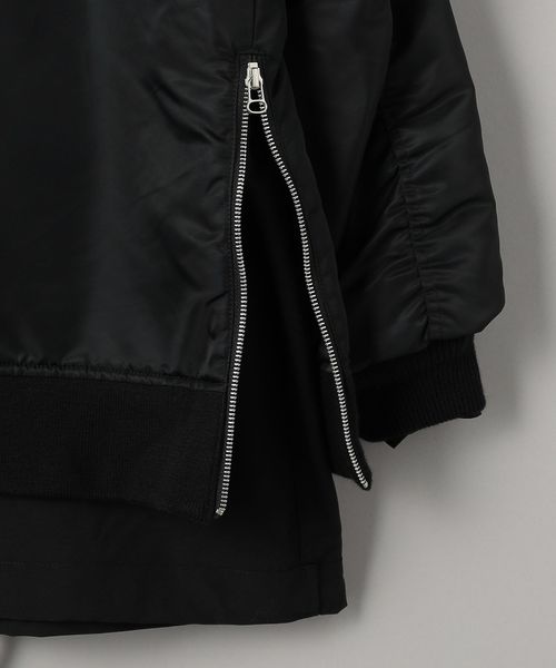 MA-1側にはサイドにファスナーがあり、やや丈の長いカバーオールを覗かせることで、レイヤード感を楽しめます。