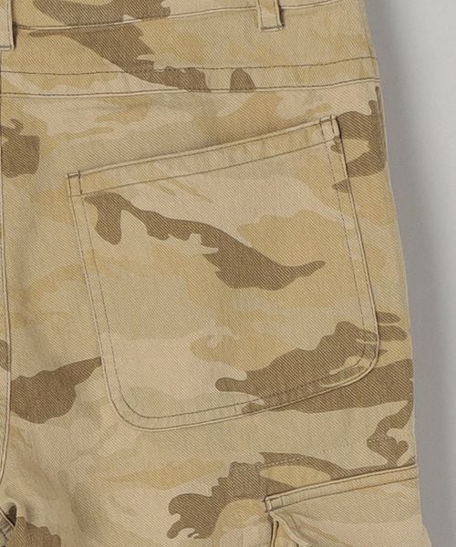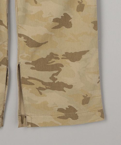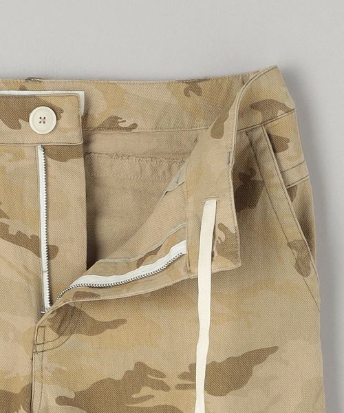 迷彩柄生地をナチュラルなトーンで仕上げたパンツ。