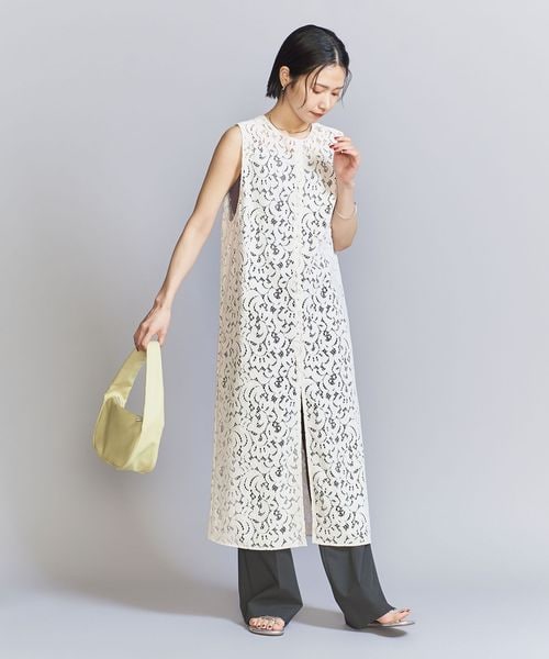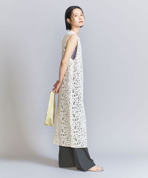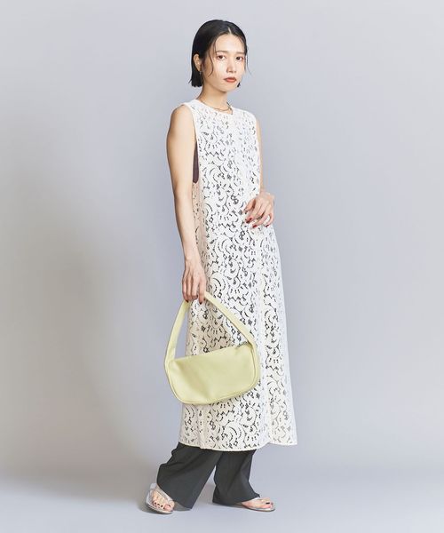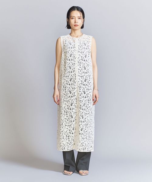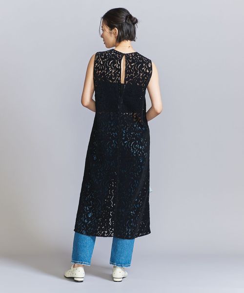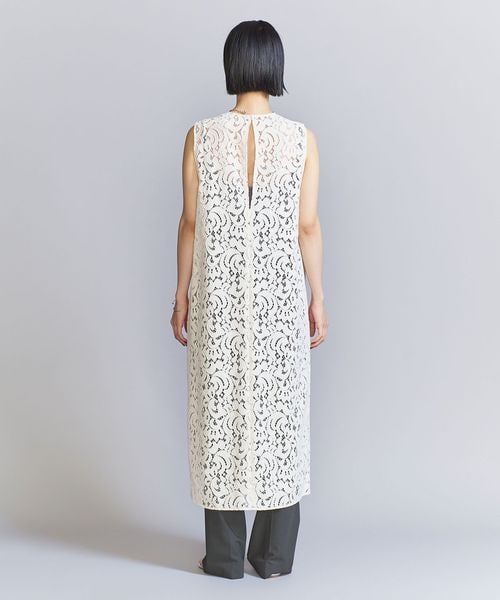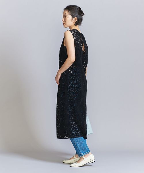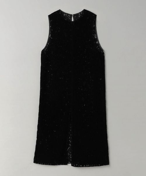 特徴的なフロッキー素材を使用し、シンプルなIラインシルエットで仕上げたワンピース。