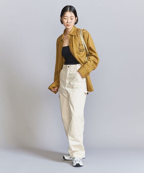 ペインターパンツのディテールを残しながら、すっきりとモノトーンでシンプルに仕上げています。