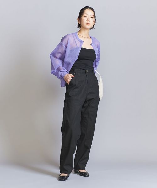 トレンドのシアートップをヘルシーに合わせたり、シャツを合わせたクリーン着こなしも◎。