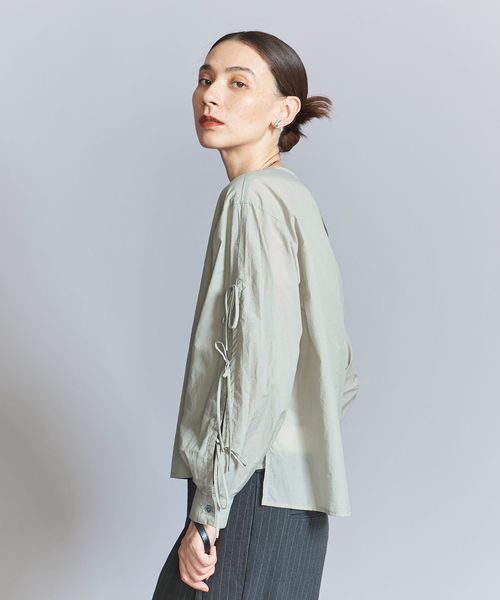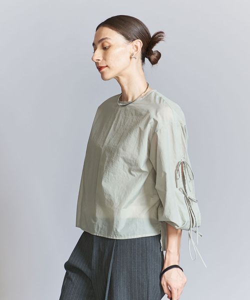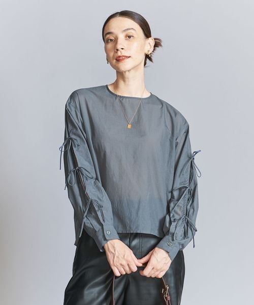 ナイロンコットン リボンスリーブブラウス ―ウォッシャブル―