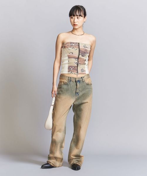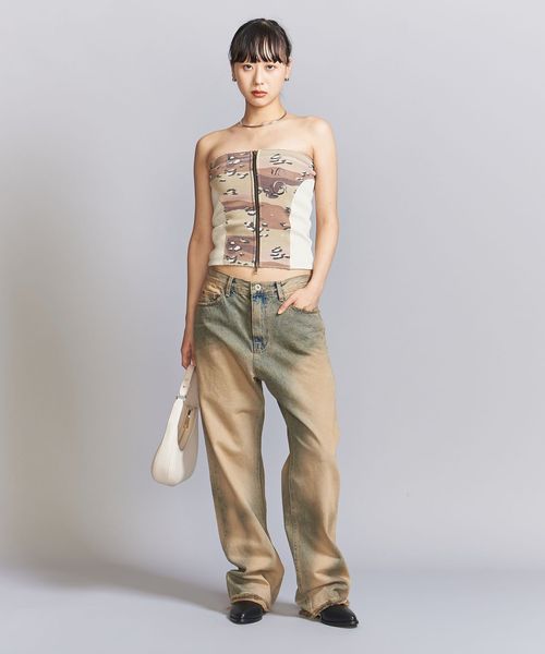 トップスには別注シリーズのビスチェを合わせた、個性的なカジュアルスタイルもぜひ。