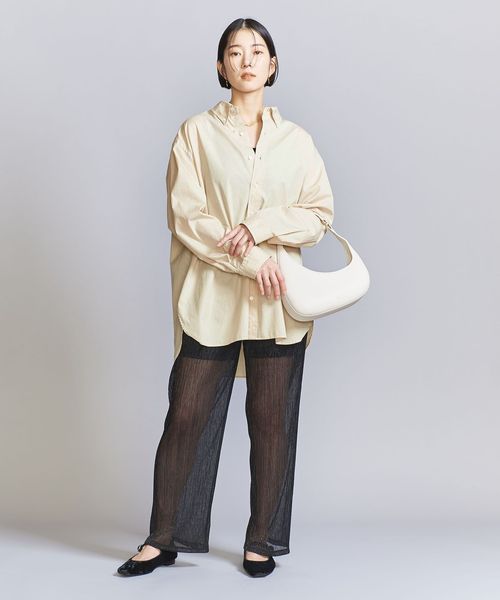 フェミニンな素材感に対し、ボタンダウンと、裾のサイドにガゼットを施したメンズライクなディティールで仕上げたこだわりの一着。