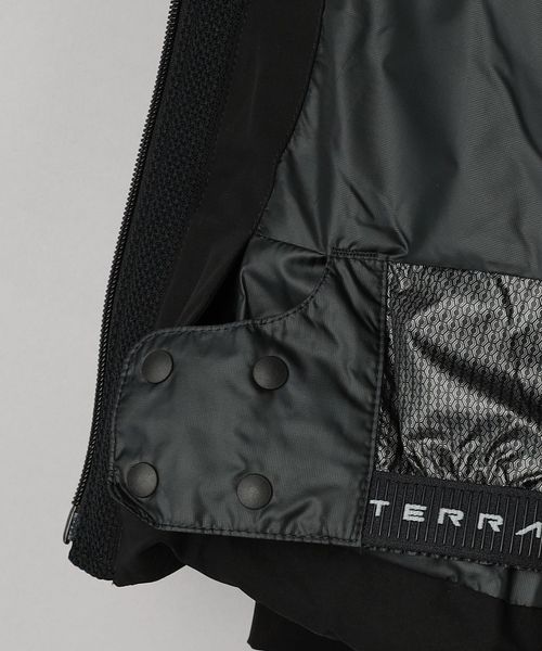 フロントジッパー部分に採用されたデュアルジップベンチレーションは、2列のジッパーとその間に配置されたメッシュ生地により衣服内に外気を取り込み、ジャケット内にこもりやすい不快な熱や湿気を逃がすことが可能。