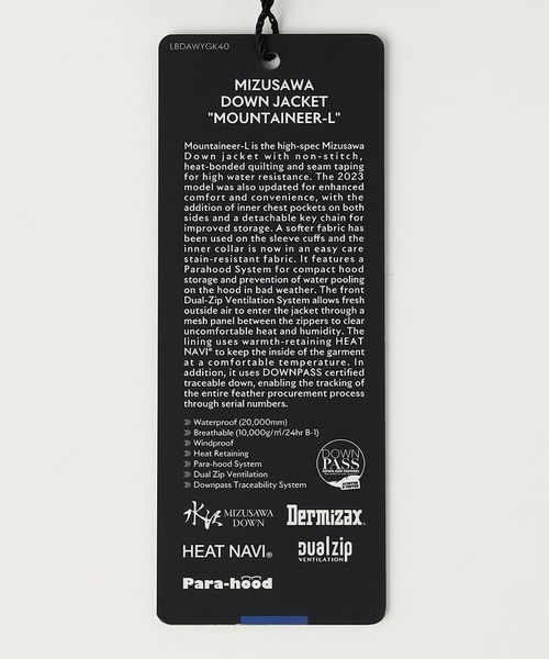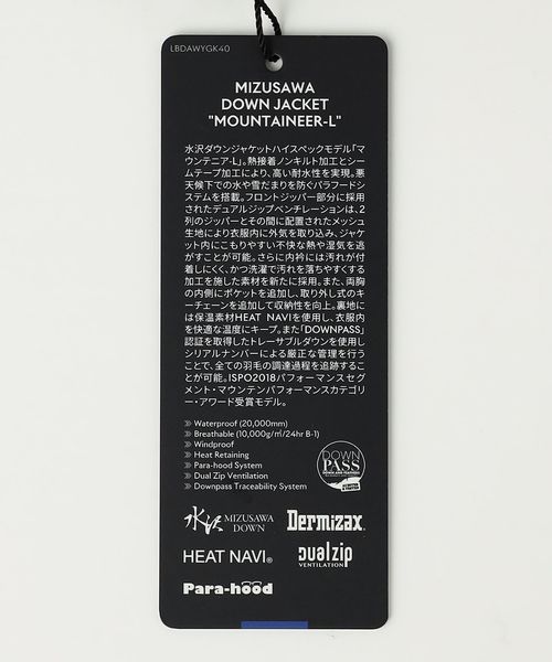 ■メーカー品番:DAWYGK40U MIZUSAWA DOWN JACKET MOUNTAINEER-L/BK(2024年モデル)