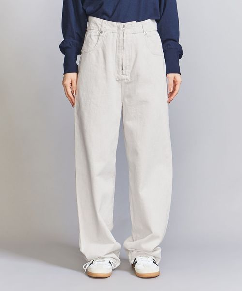 フロントジップで腰回りをすっきりと仕上げたワイドシルエットパンツ。
