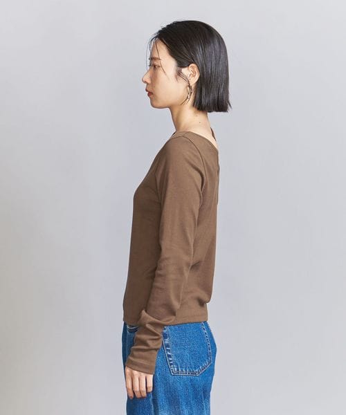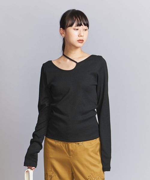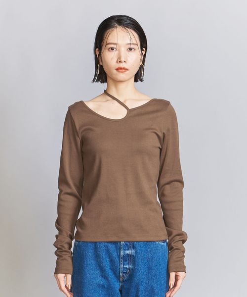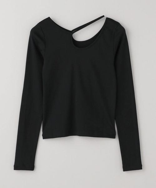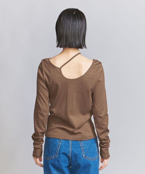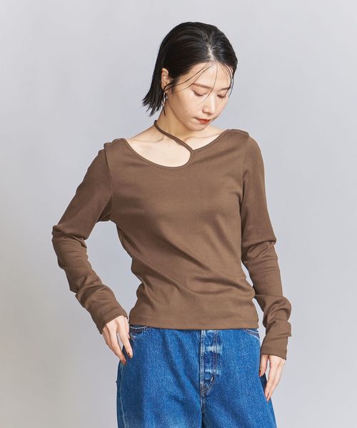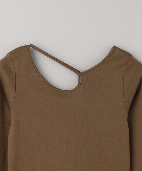 ネックのカットアウトディテールが特徴的なカットソートップス。