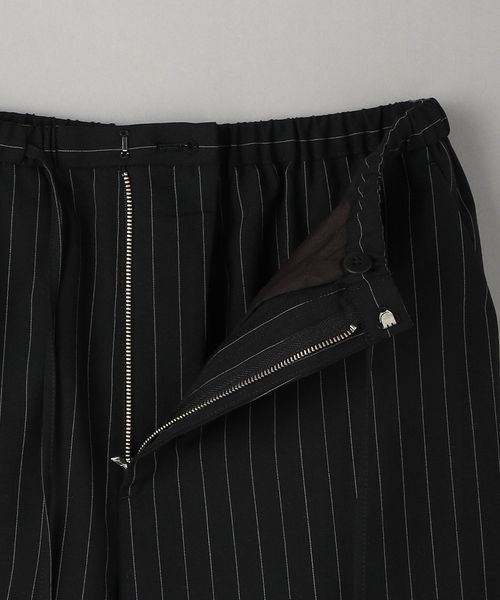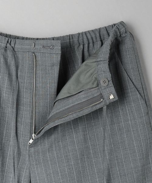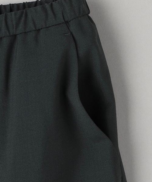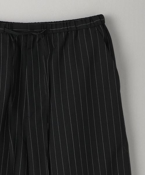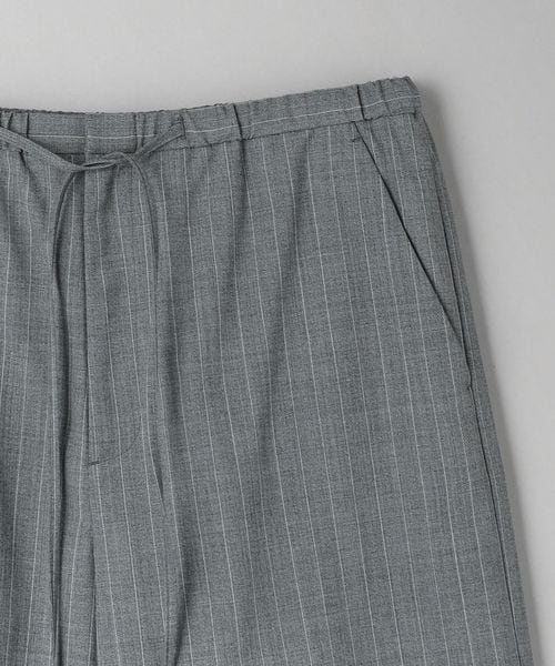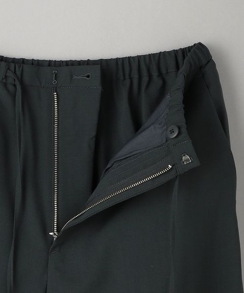 こちらは、ウエストを前開きのドロスト仕様にした、スラックス見えの綺麗な印象のイージーパンツ。