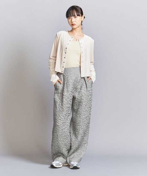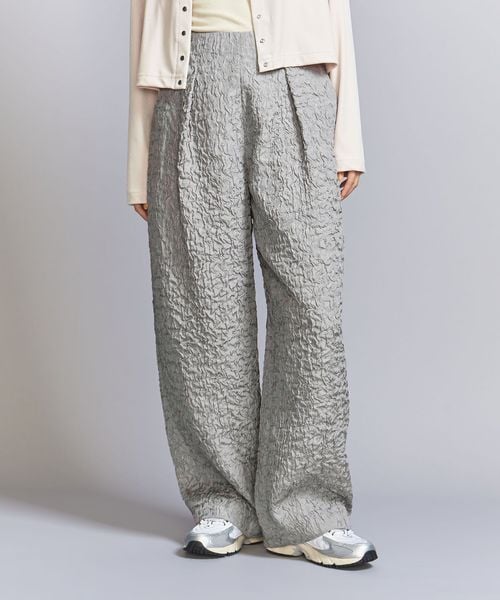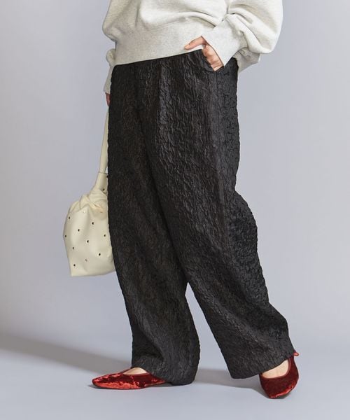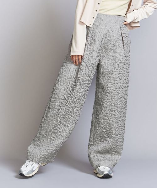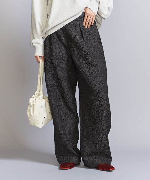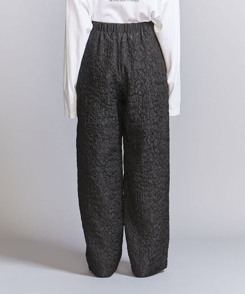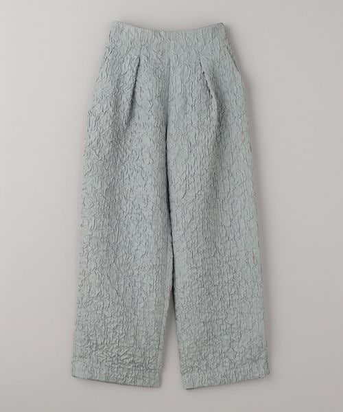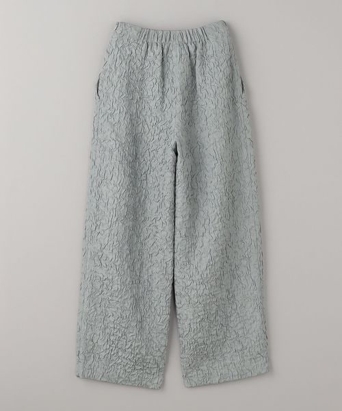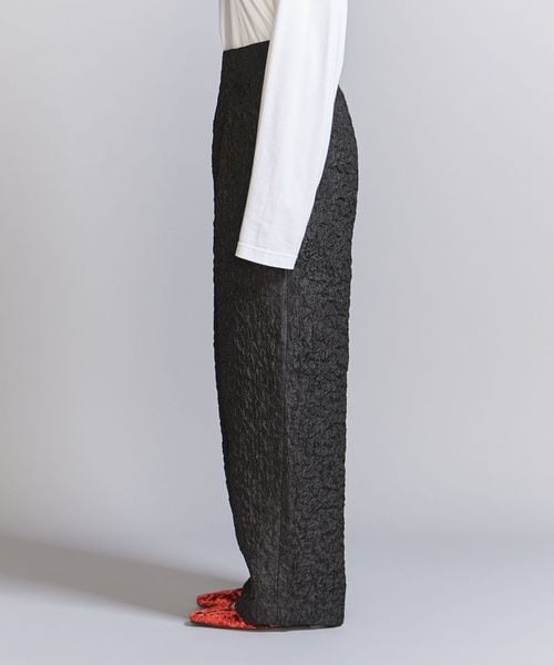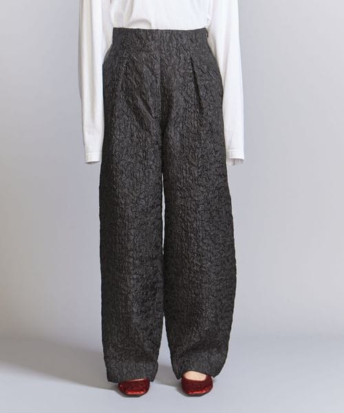 ポコポコとした表情感と光沢が特徴のシンプルなストレートパンツ。