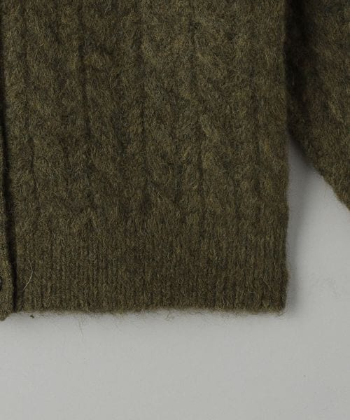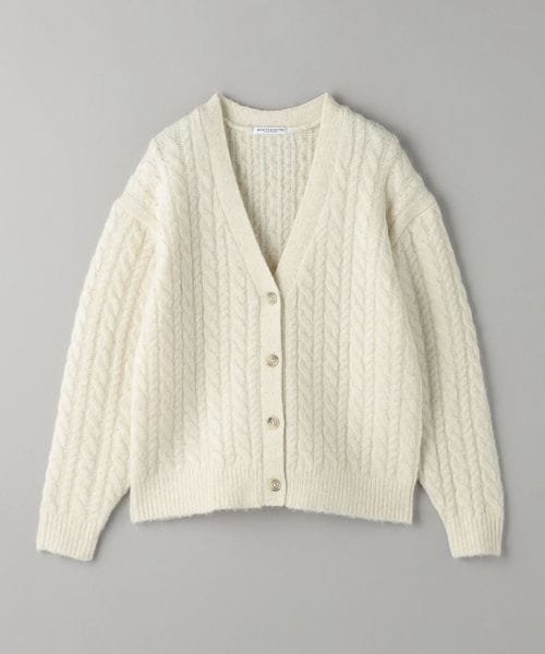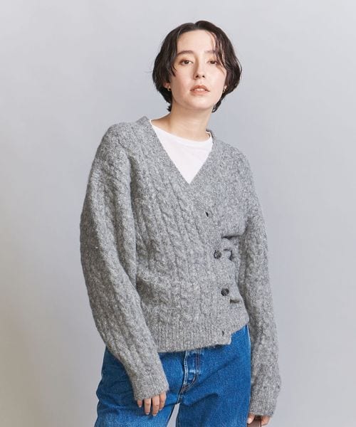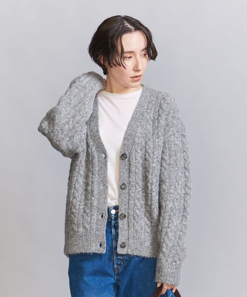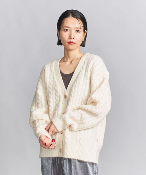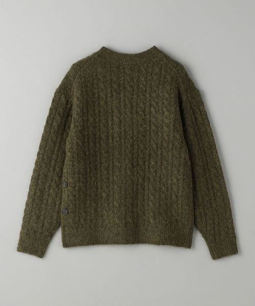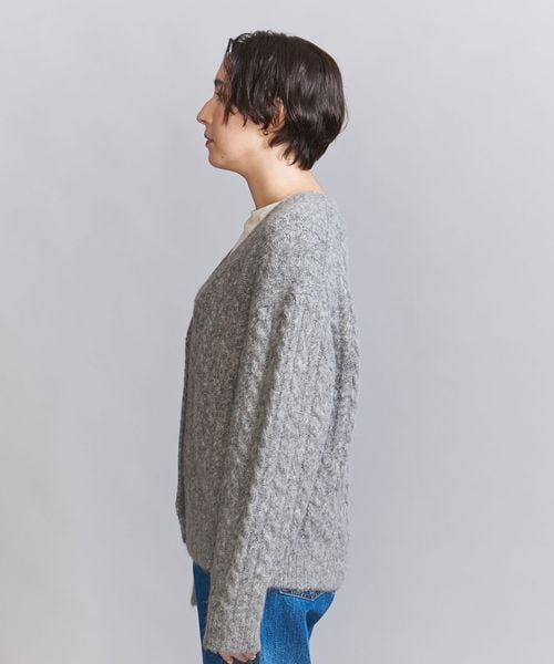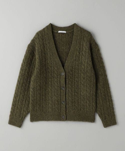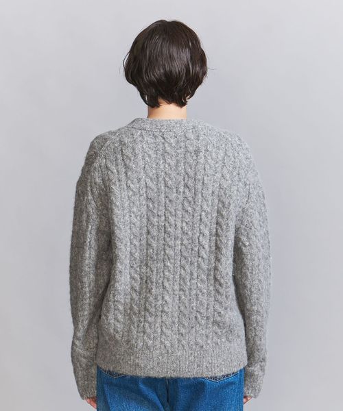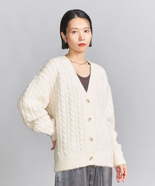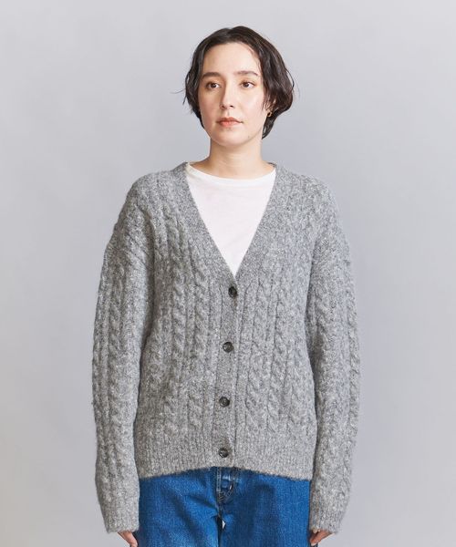 ランダムなケーブル編みが表情豊かなゆったりシルエットのVネックカーディガン。