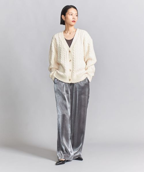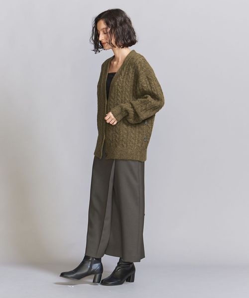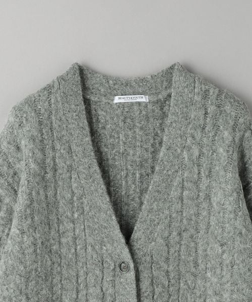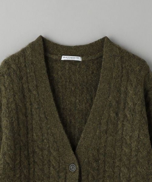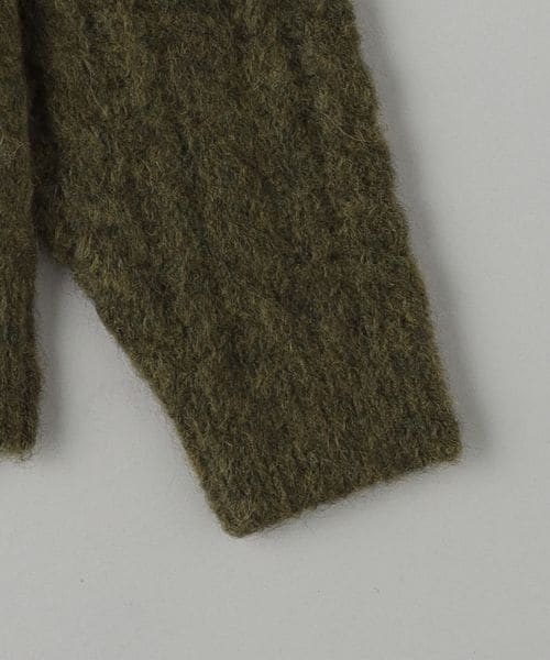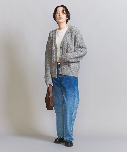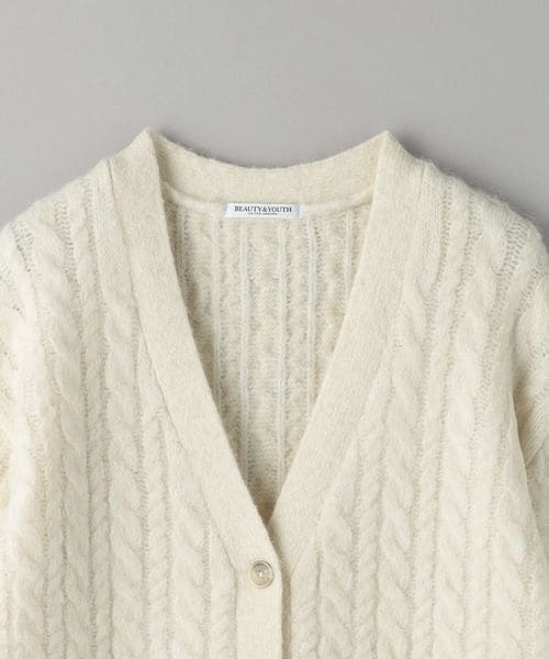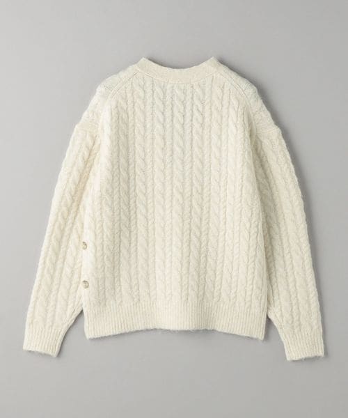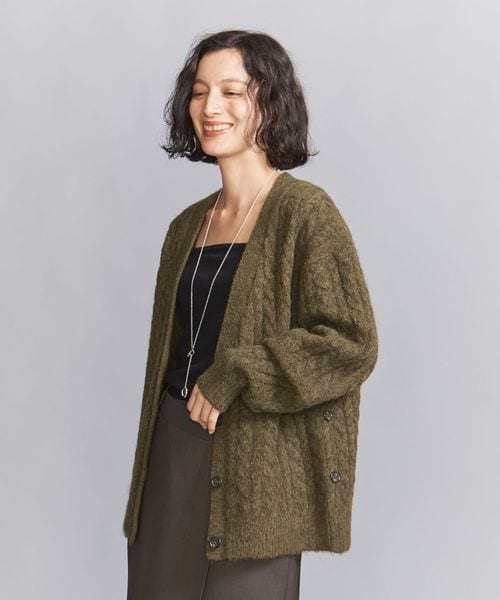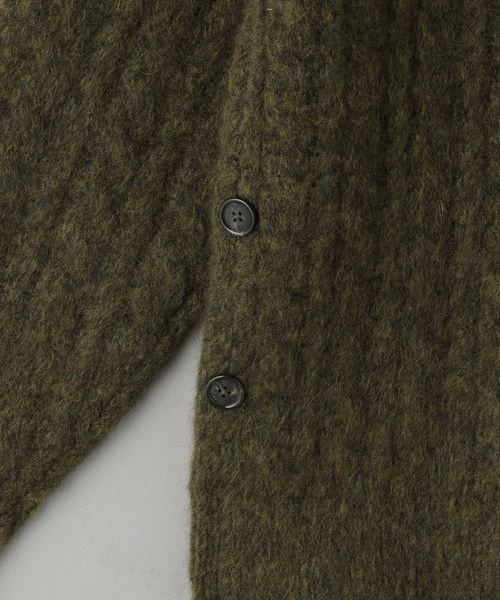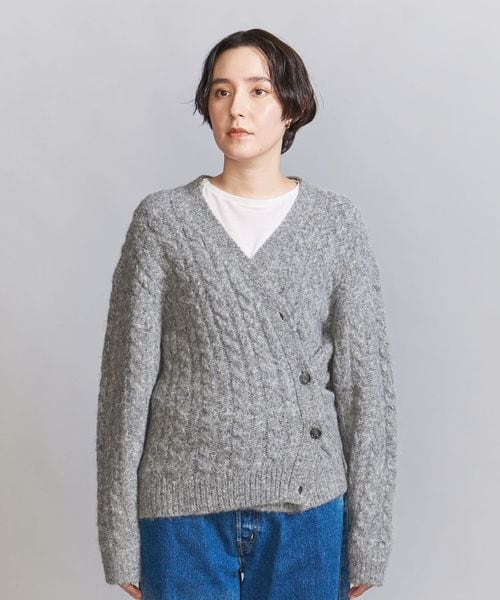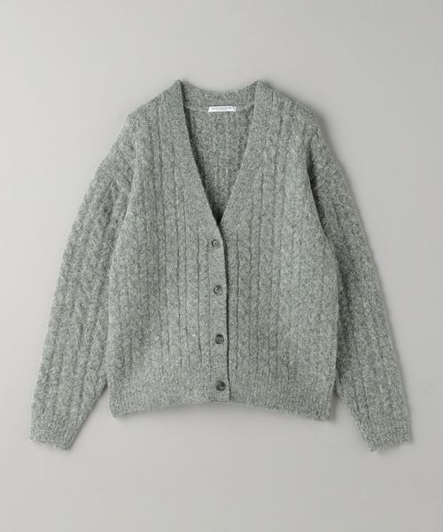 ランダムなケーブル編みが表情豊かなゆったりシルエットのVネックカーディガン。