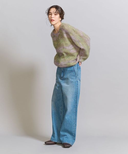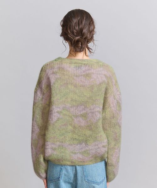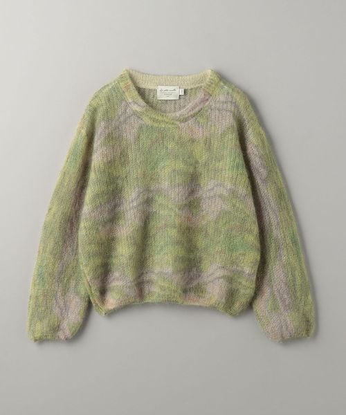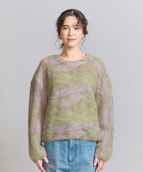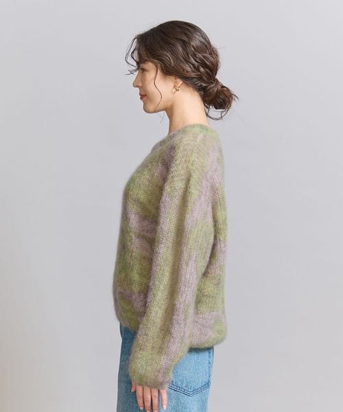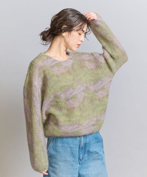 モヘヤ混の毛足感のある表情に淡いカラーが柔らかな印象のニットプルオーバー。