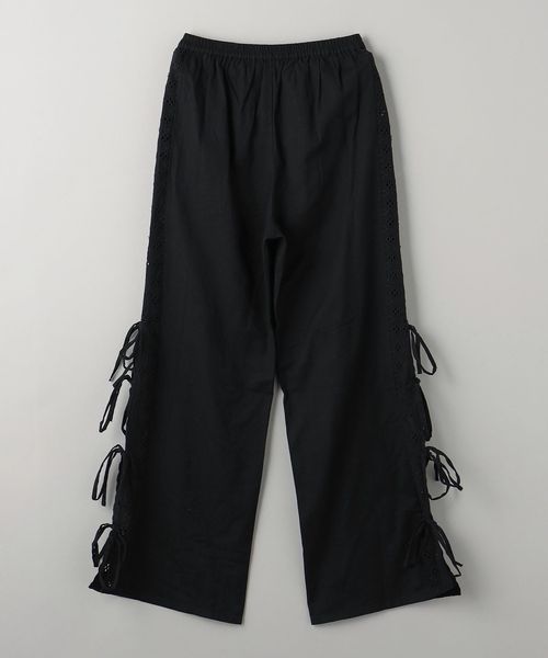 サイドのリボンディテールがユニークなアクセントを添えるパンツ。