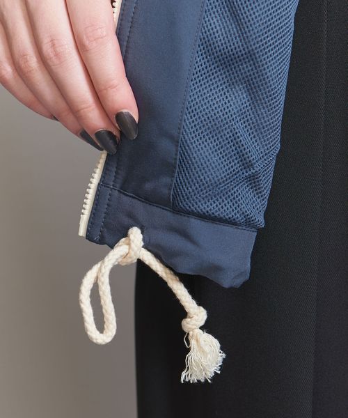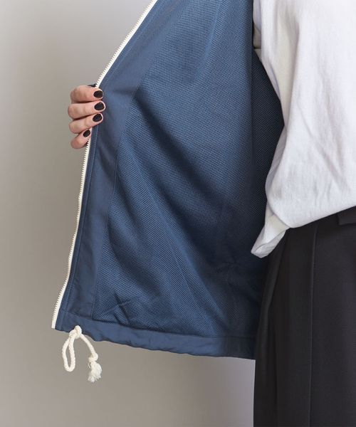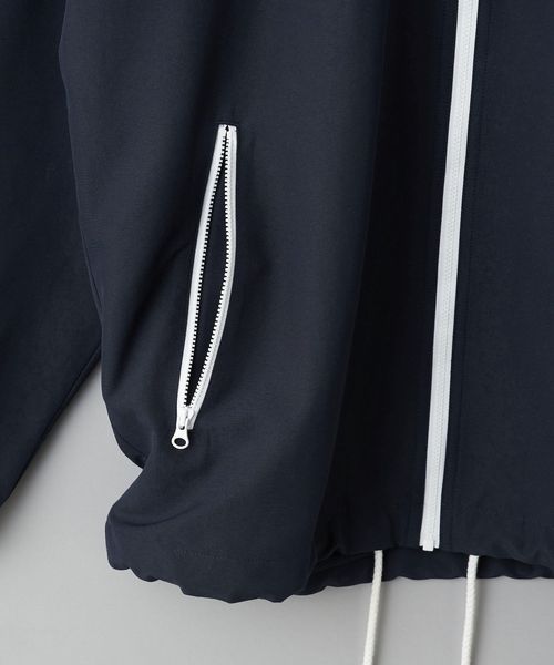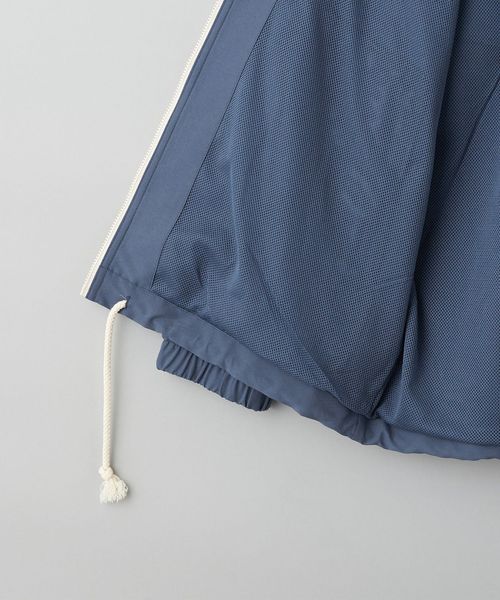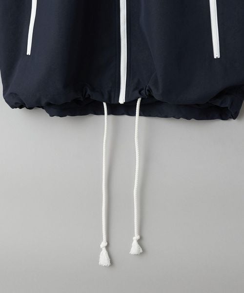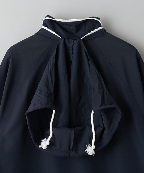 やや太めのドローコードや、襟にはオリジナルのパターンを踏襲したフードが収納されており、レトロ感を醸成しています。