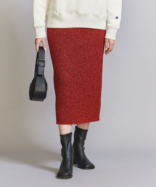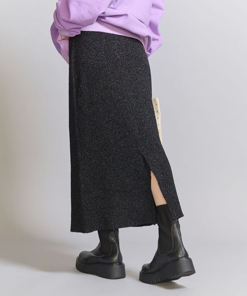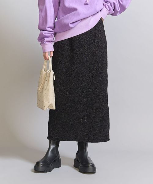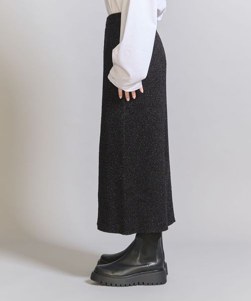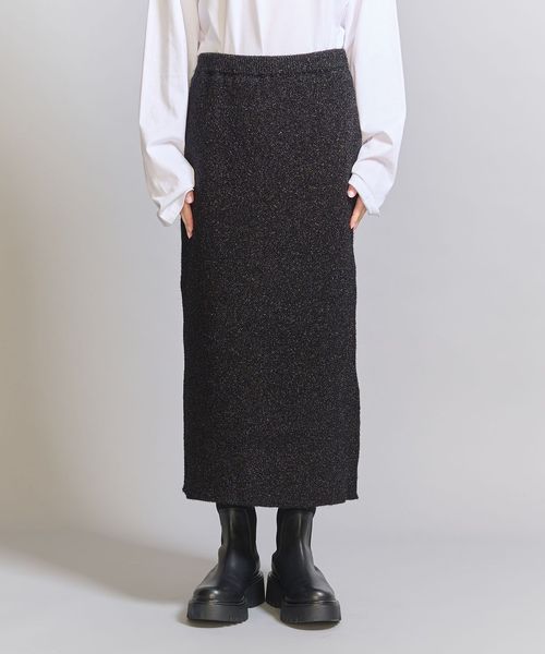 キラキラとした存在感のある編地を主役にした、シンプルなIラインのスカート。